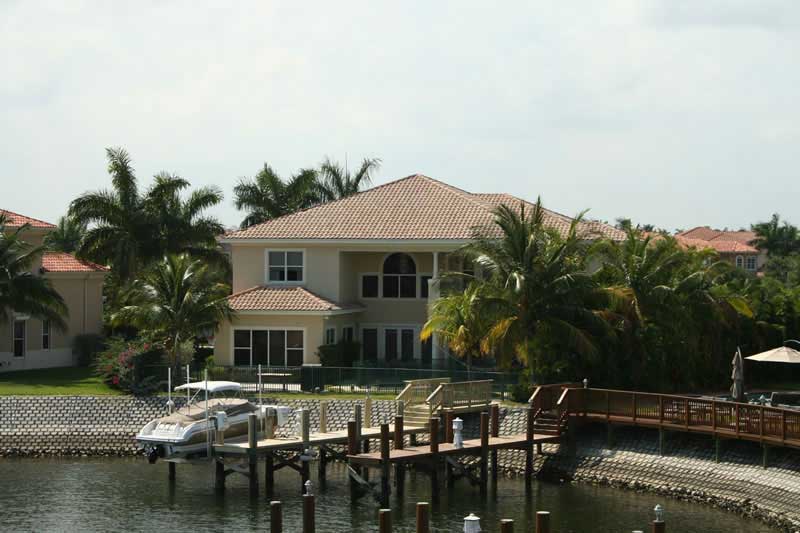 These Mediterranean-style waterfront designs feature five bedrooms, a cabana bathroom and three-car garage. There is a spacious and towering covered entrance and covered patio. The formal dining room has a coffered ceiling. On the first story, there is a VIP suite with a private entrance. The den/library is very cozy and a perfect place for simple solitude. The eight-foot high French doors have sidelights adding to the elegance and opulence of the design. Columns, arches and the baluster rail provide a strong curb appeal. A chef's "dream" island kitchen with an eating bar, butler's pantry and...