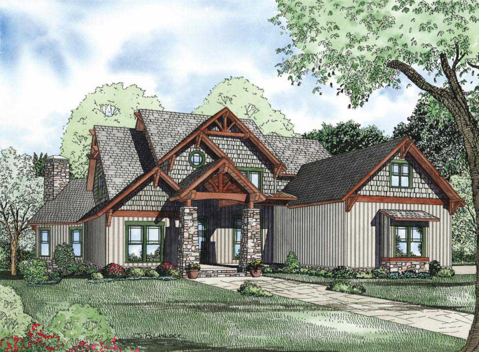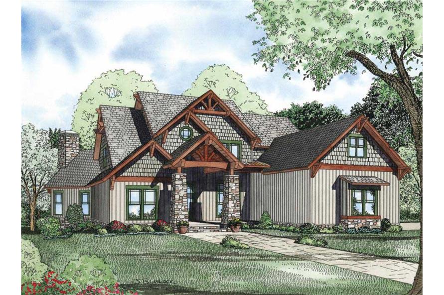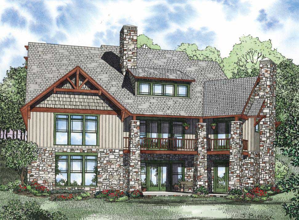 This impressive rustic Craftsman (House Plan #153-1128) has 4992 square feet of living space. The 2-story floor plan includes 5–6 bedrooms and a walk-out basement.