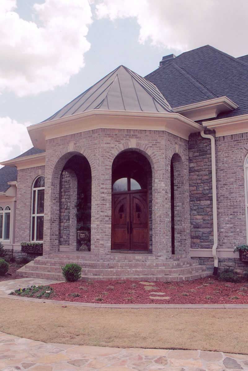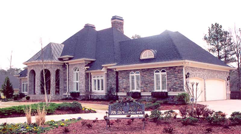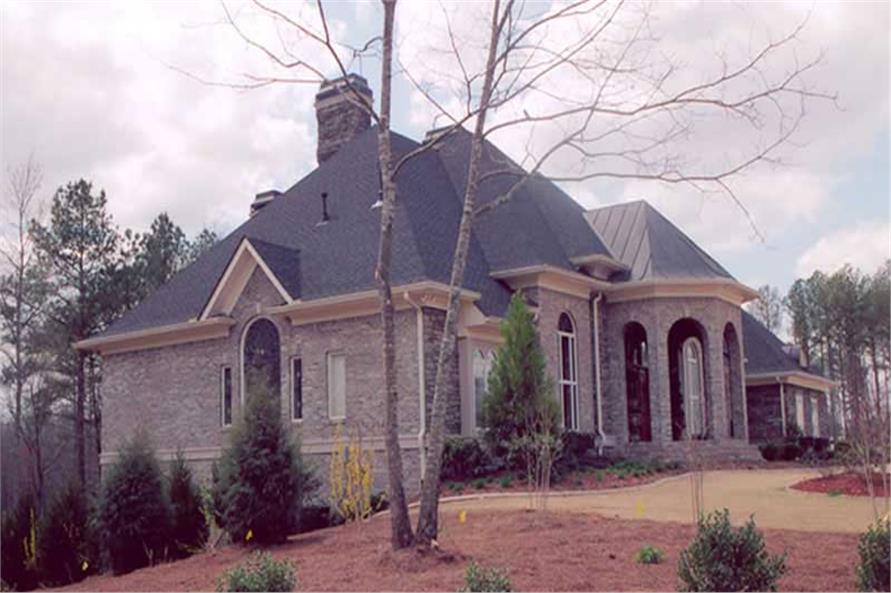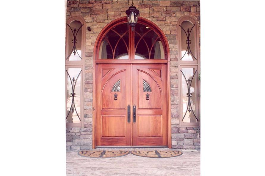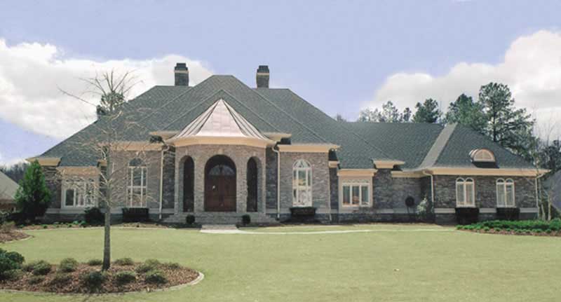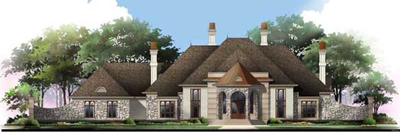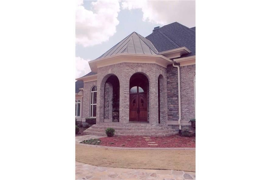 This beautiful house plan has a nice covered entry. As you make your way through the front entrance of the floor plan you come into view with a beautiful spiral staircase. The master bedroom includes a powder room, two walk-in closets, master bath, and a doorway connecting to the library. In the grand room you have a fireplace with nice bow windows that look out to a beautiful veranda.