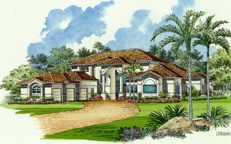 This lavish Mediterranean house design with luxury design influences (House Plan #107-1030) has over 5080 square feet of living space. The two story floor plan includes 6 bedrooms.