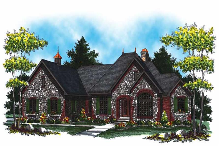This Country French charmer features a stone and brick combination that is sure to please even the pickiest buyers. As you enter these luxury house plans, you'll love the view of the back yard through the expansive wall of windows found in the great room. The kitchen lies to the left of the great room and features a breakfast bar and large walk-in pantry. The nook flows into the kitchen and is surrounded by bayed windows while the adjacent sunroom features two skylight windows. The main floor master suite is located on the right of the home and is a pleaser with its spacious walk-in...