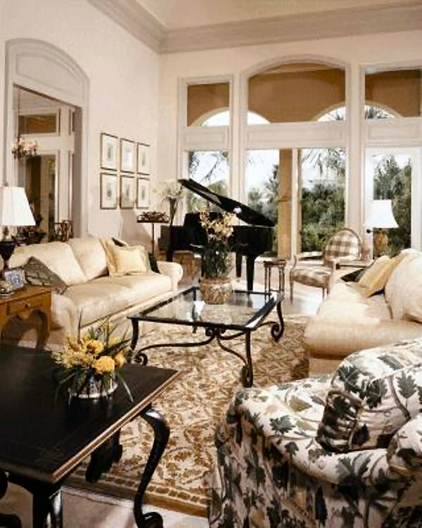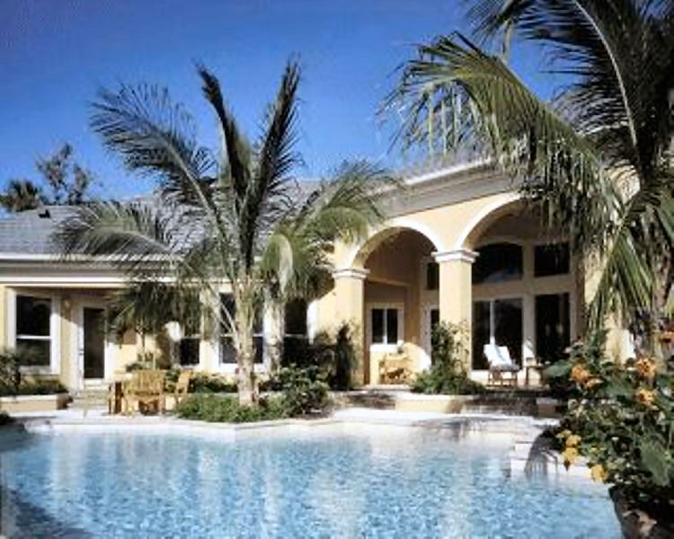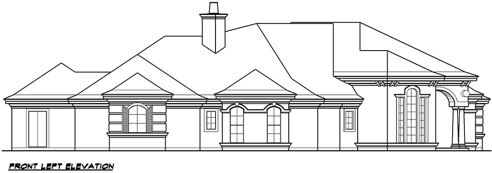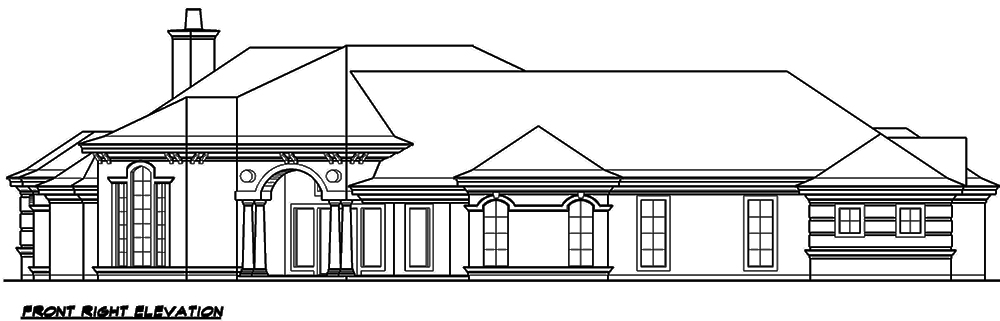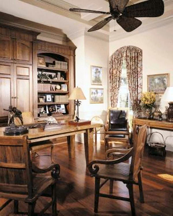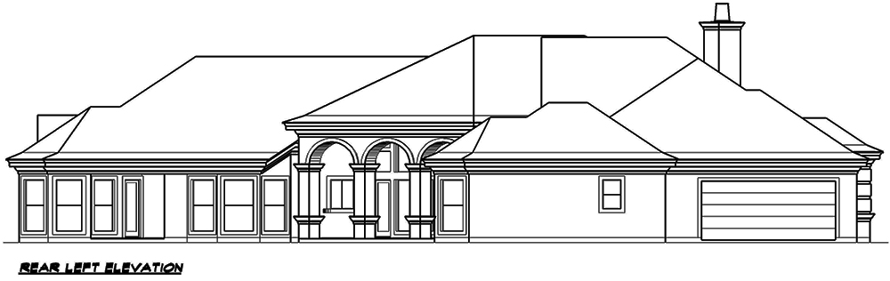 This lovely Mediterranean style home with Spanish influences (House Plan #195-1051) has 5108 square feet of living space. The 1 story floor plan includes 3 bedrooms.