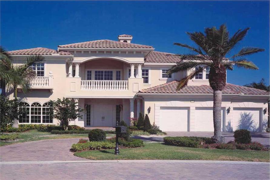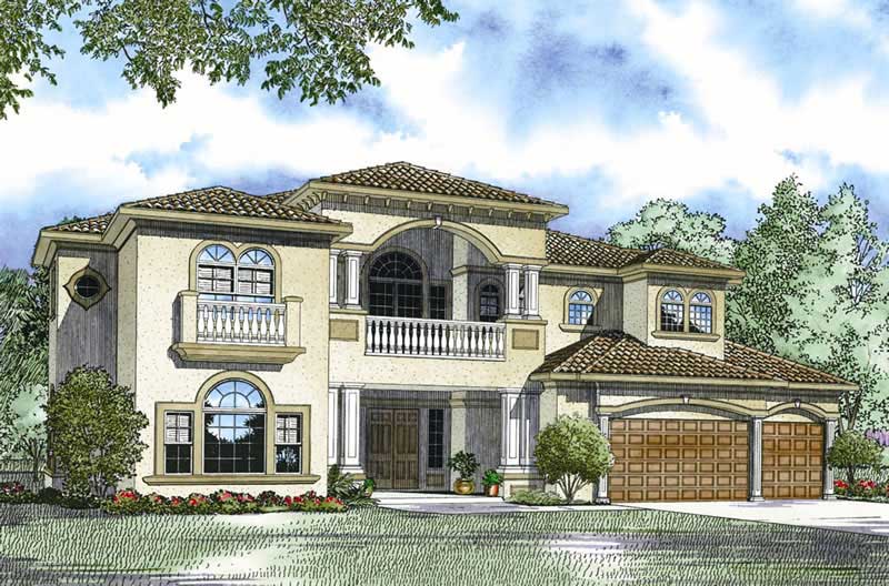 This is a two-story, Traditional Spanish Mediterranean-style designs that feature five bedrooms, four and one-half bathrooms, a cabana bath, three-car garage and spacious covered entrance with eight-foot high front door with sidelights. Columns, arches and the baluster rail add to a strong curb appeal to this design. The first story features a large living room with two-story ceilings, wet bar and fireplace. The "dream" chef's island kitchen complete with an eating bar, butler's pantry and cafe leads to the family room. The formal dining room, cozy den/library and VIP...