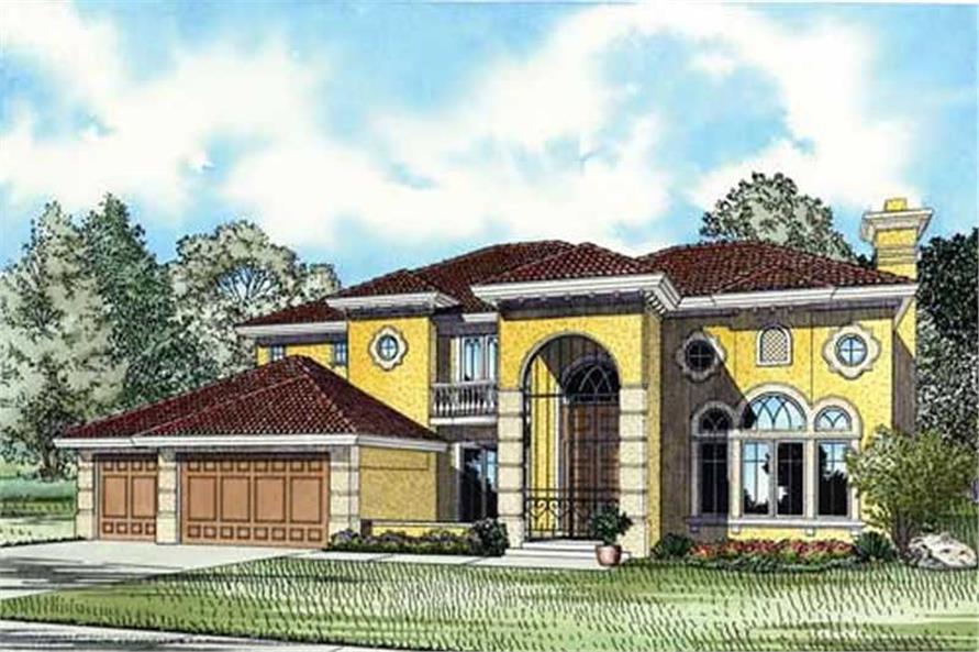 This lavish Mediterranean house design has 5140 living sq ft. The 2-story floor plan includes 5 bedrooms. Features of note include:
