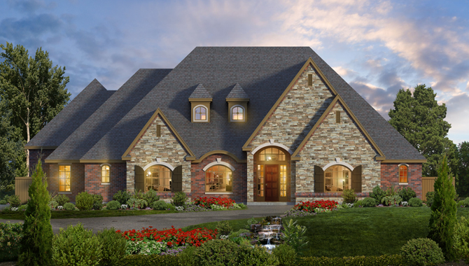 This alluring European style house has 5,154 square feet of living space. The two-story floor plan includes 3 bedrooms and 2.5 bathrooms.