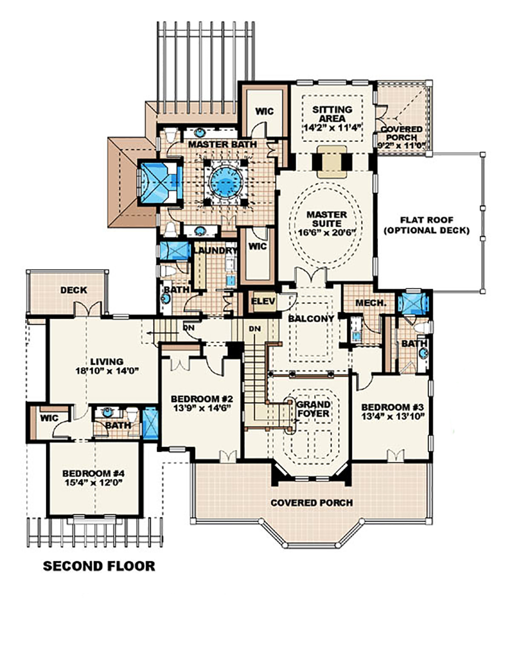 5-Bedroom, 5209 Sq Ft Florida Style Plan with Master Bathroom