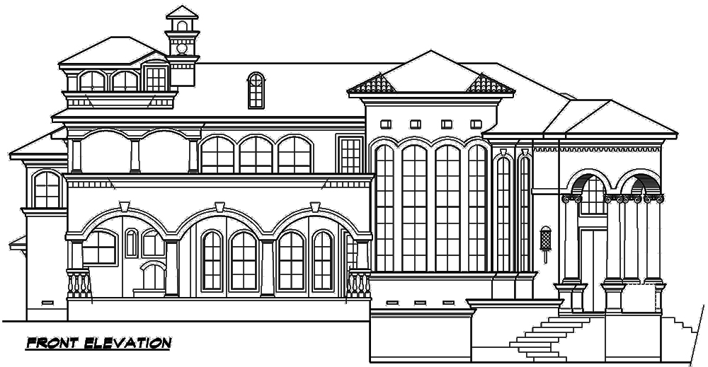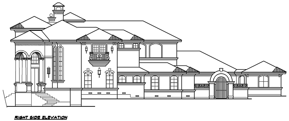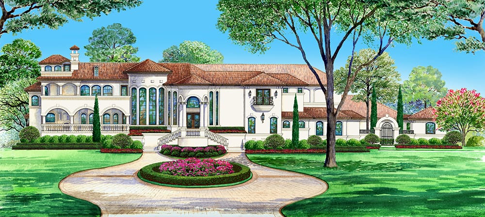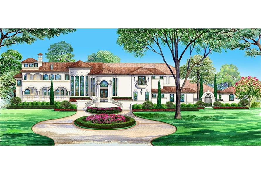 This impressive Mediterranean style home with Spanish elements (Plan #195-1120) has 5413 square feet of living space. The 2-story floor plan includes 4 bedrooms.