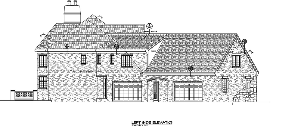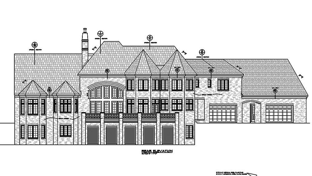 This lovely French style home with Georgian influences (House Plan #120-2473) has 5460 square feet of living space. The 1.5 story floor plan includes 5 bedrooms.