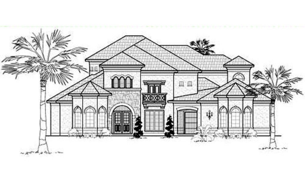 This lovely Luxury style home with Mediterranean influences (House Plan #134-1329) has 5502 square feet of living space. The 2 story floor plan includes 5 bedrooms. We especially like the "secret" room (labeled "hidden room") on the second floor by the staircase!