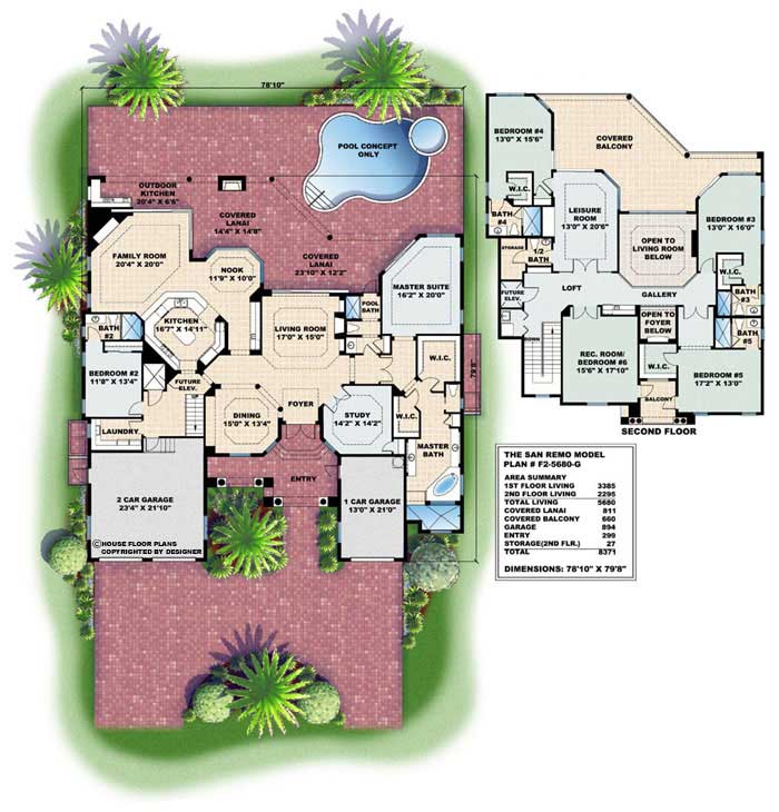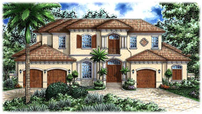 A lot of family living can take place in the San Remo House Plan. The upstairs of this home plan features a leisure room and either a rec room or an additional bedroom. The downstairs is open and flows nicely both inside and out. A three-car garage tops off this European influenced house plan.