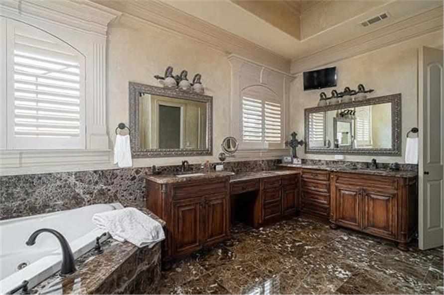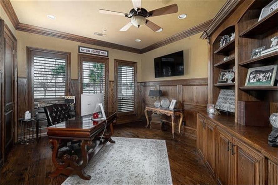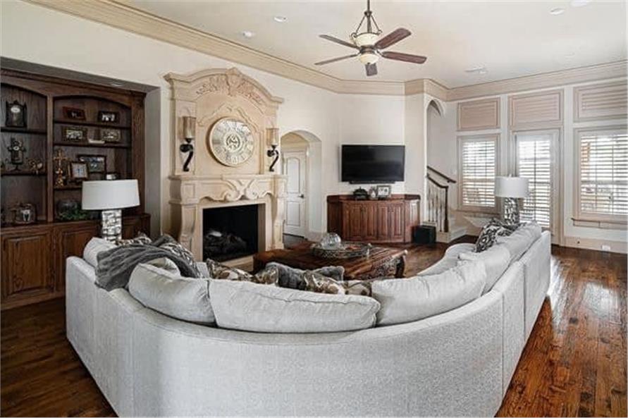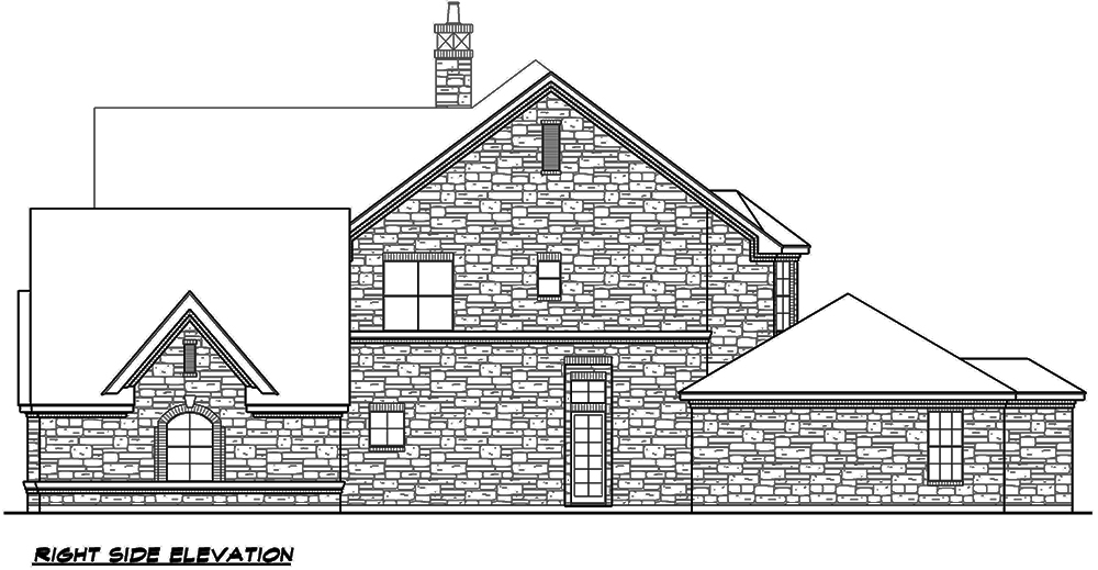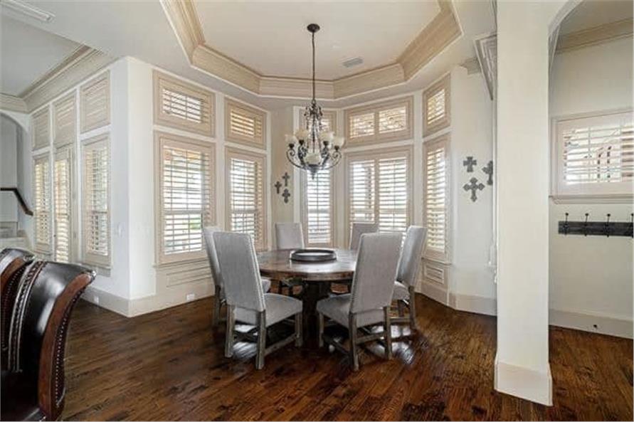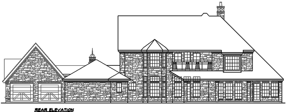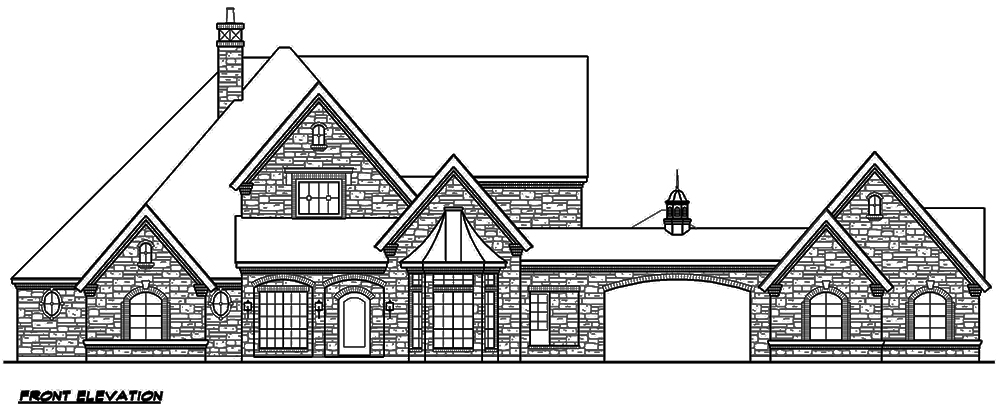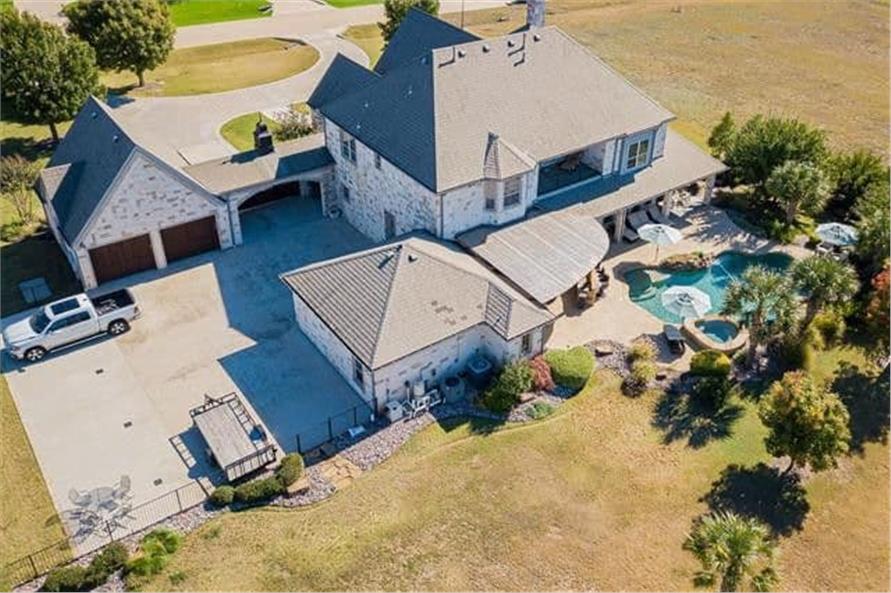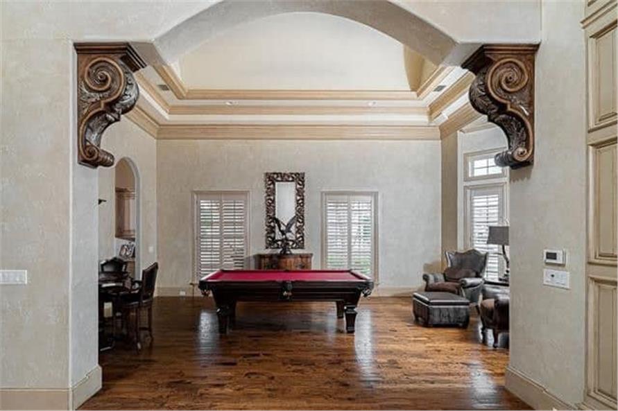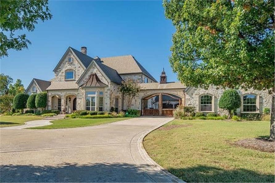 This lovely Tudor style home with European influences (House Plan #195-1125) has 5765 square feet of living space. The 2 story floor plan includes 5 bedrooms.