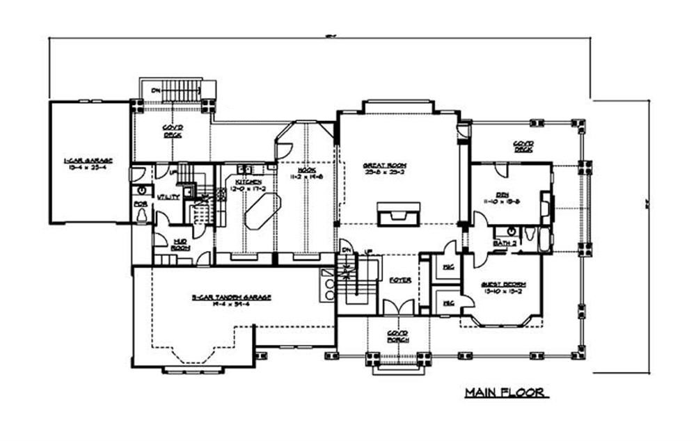 This lovely Craftsman style home with country influences (House Plan #115-1165) has over 5810 square feet of living space. The two story floor plan includes 4 bedrooms.