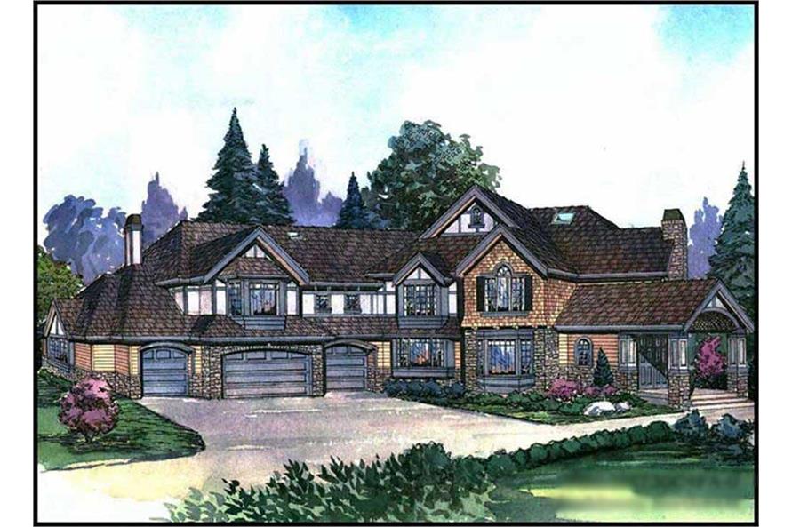 This alluring European style house with French influences (House Plan #115-1186) has over 5860 square feet of living space. The two story floor plan includes 5 bedrooms.