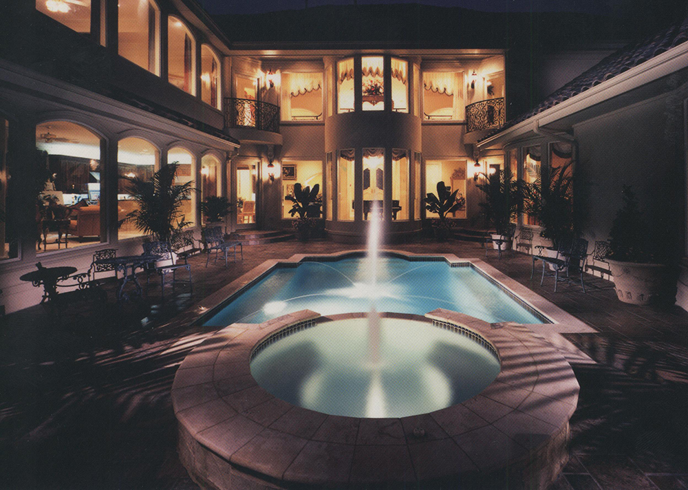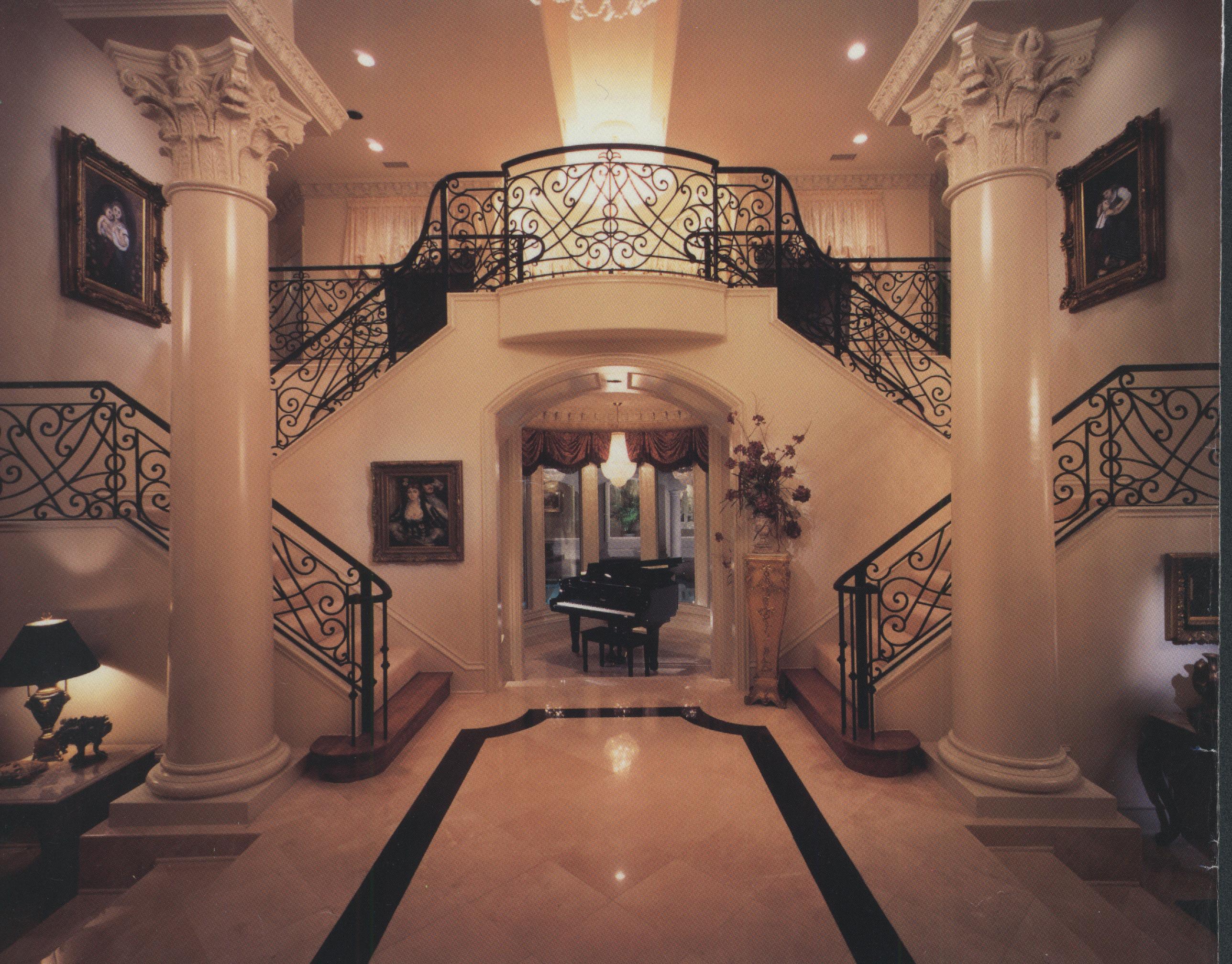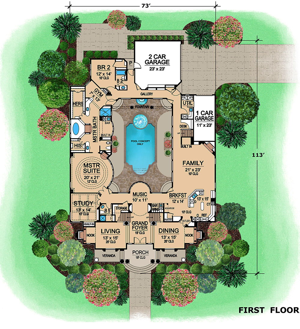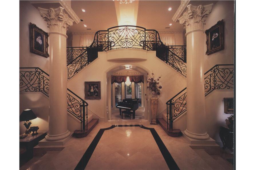 This outstanding luxury home with Georgian expressions (House Plan #195-1165) has 6024 square feet of living space. The 2-story floor plan boasts an interior courtyard large enough for a pool and includes 4 bedrooms.