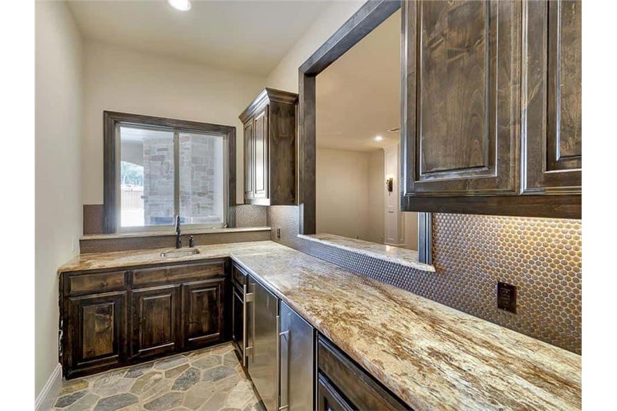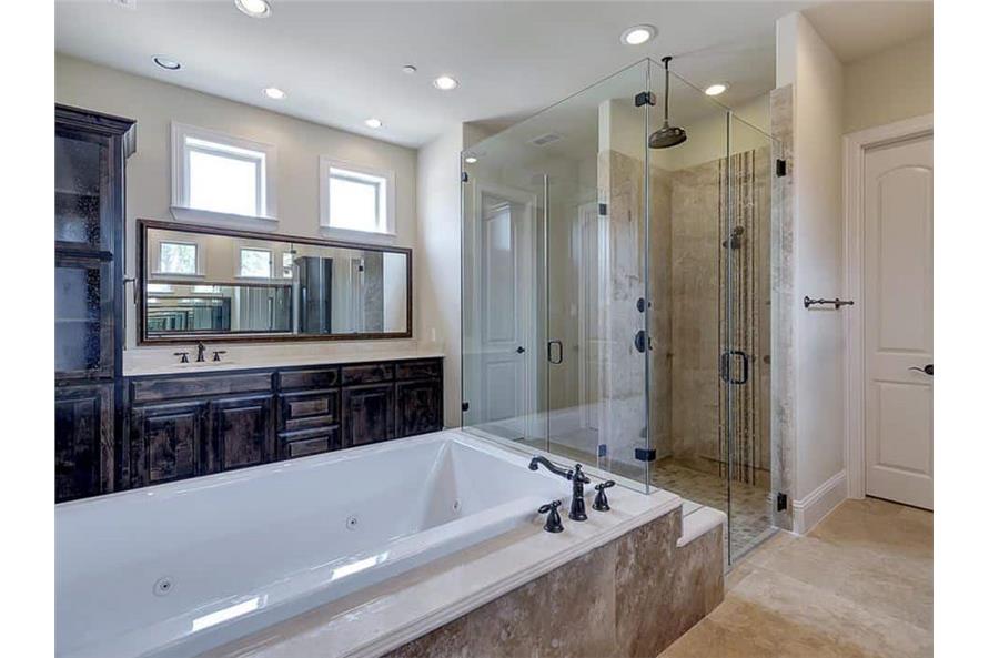 This two-story Mediterranean style home has a heated-cooled area of 4,159 square feet on the main level and 1,893 square feet on the upper level. The very interesting, decidedly Old World facade together with the use of imposing windows and natural stone cladding give this house its curb appeal.