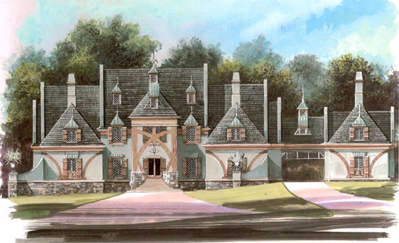 This is a gorgeous and amazing home plan that you will absolutely love. Step back into history as this alluring European-influenced mansion lets your imagination run (Plan #106-1218). From its steep roof pitches, to the use of brick, stucco, and wood accents, the architectural detailing of this home design is simply umatched. From walking up to the front porch, the scene is set for this spectacular home with those large wood columns.
