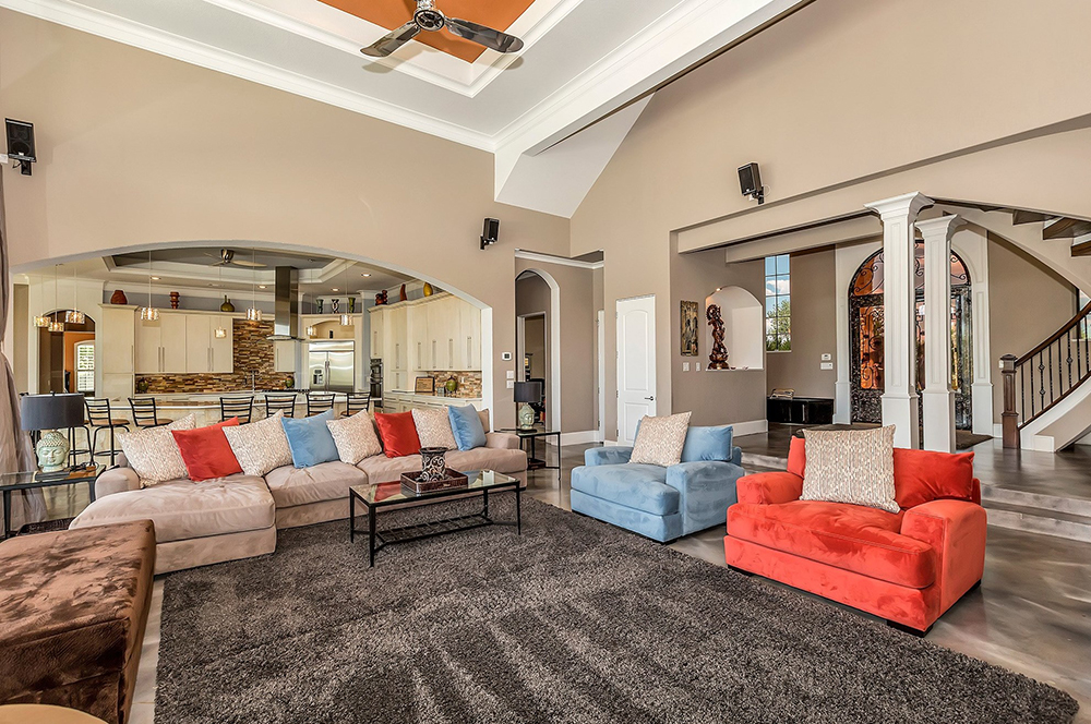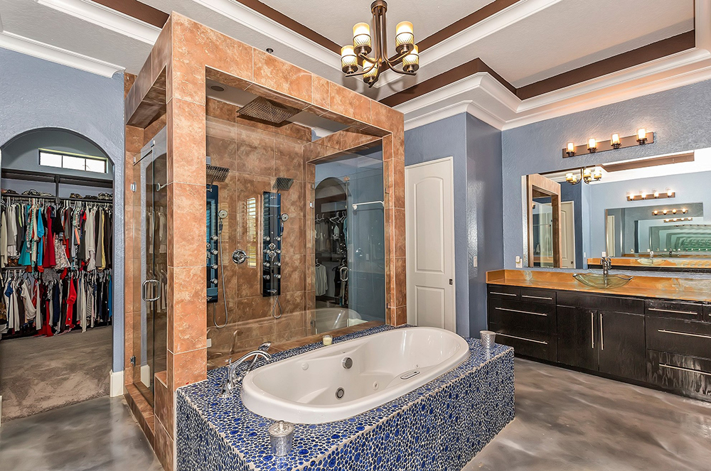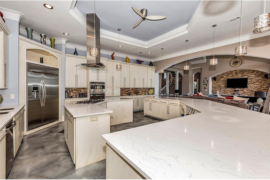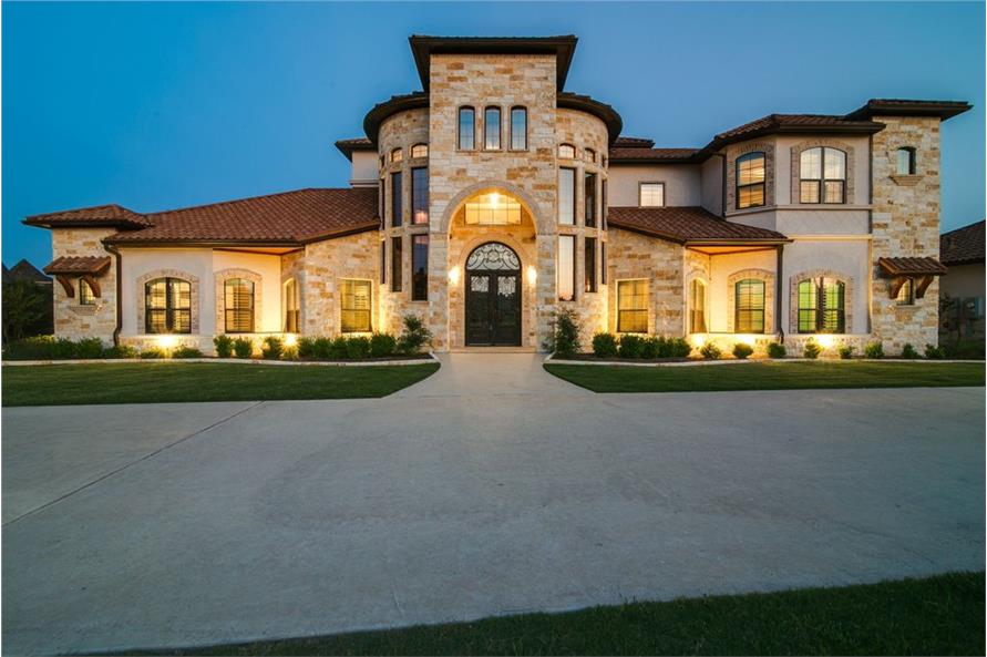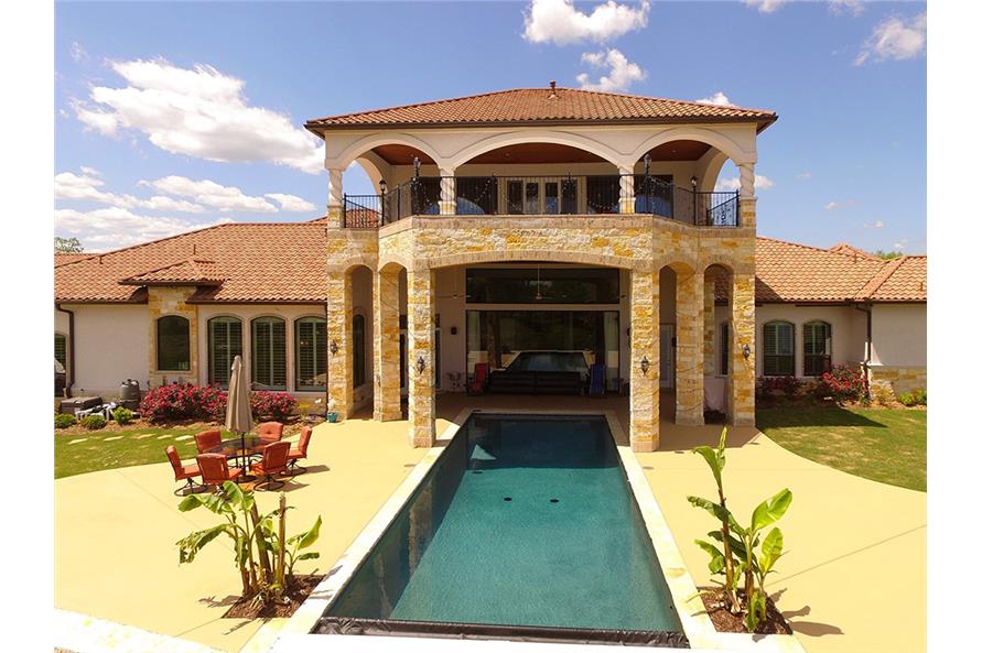 This lovely Mediterranean style home plan with Luxury influences (House Plan #195-1173) has 6121 square feet of living space. The 2 story floor plan includes 5 bedrooms.