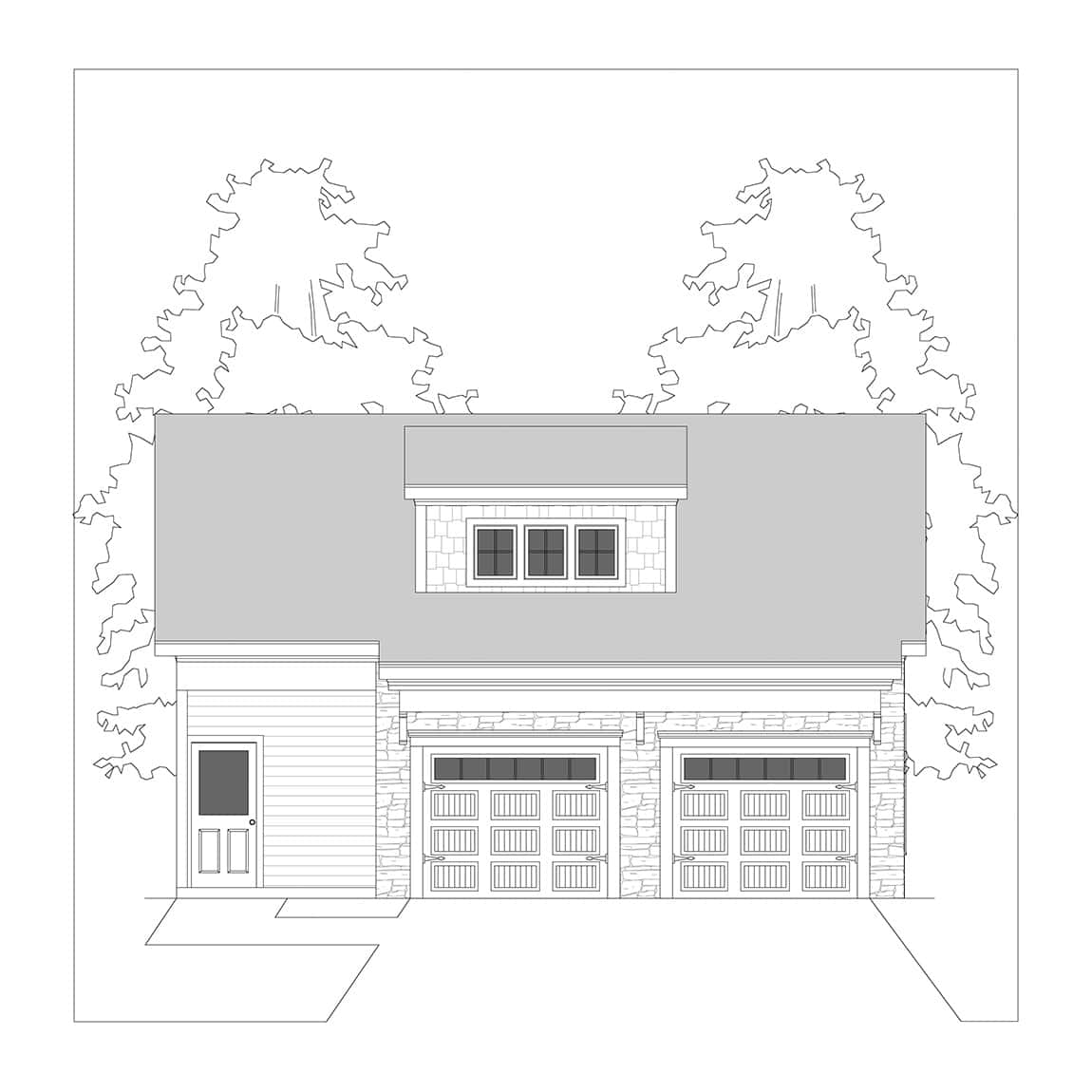 This garage with Modern Farmhouse characteristics has 695 square feet and can accommodate 2 vehicles with a very flexible layout making the possibility of adding additional workshops. Above the garage, is a 617 square feet of fully conditioned living space - a bedroom, a full bathroom, a walk-in closet, a kitchen, and a Living Room.