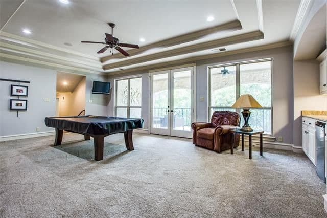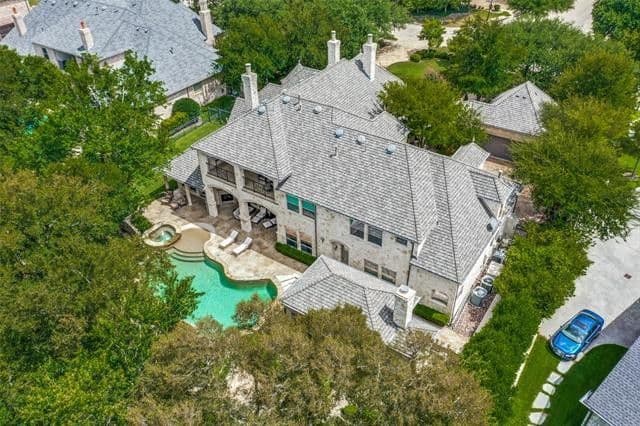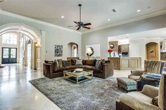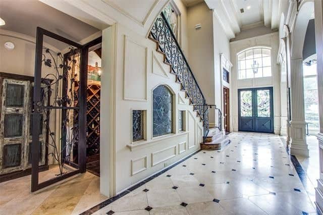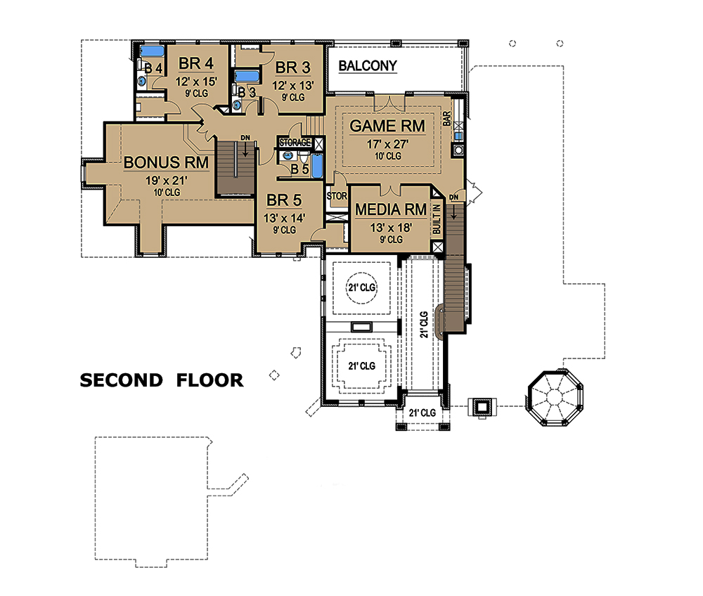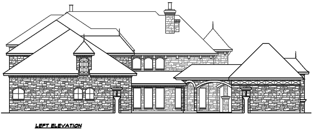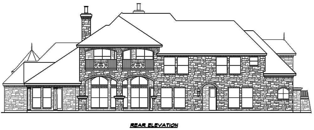This lovely Mediterranean style home with Spanish influences (House Plan #195-1171) has 6184 square feet of living space. The 2 story floor plan includes 5 bedrooms.