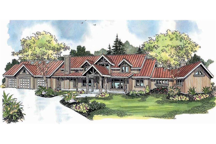 Luxury House Plans #108-1147 are two story, Country style home plans with 6309 total living square feet. This large and handsome contemporary view homeplan is a Northwestern-inspired chalet design. The vaulted living room is next to a huge kitchen with the nook and butler's pantry. Other areas includes a library, wine, hobby, media and exercise rooms.