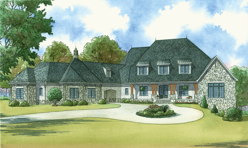 This lovely Country style home with European influences (House Plan #193-1037) has 6356 square feet of living space. The 2 story floor plan includes 5 bedrooms.