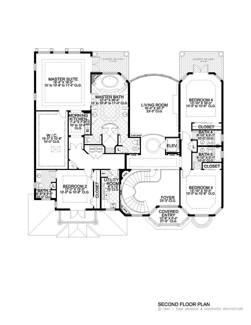 These two story, Luxury house plans feature five Bedrooms plus five and one half Bathrooms. It has a grand foyer open to above. There is plenty of openness on the main level and has an In-Law Suite. There is also an elevator included in these Mediterranean home plans.