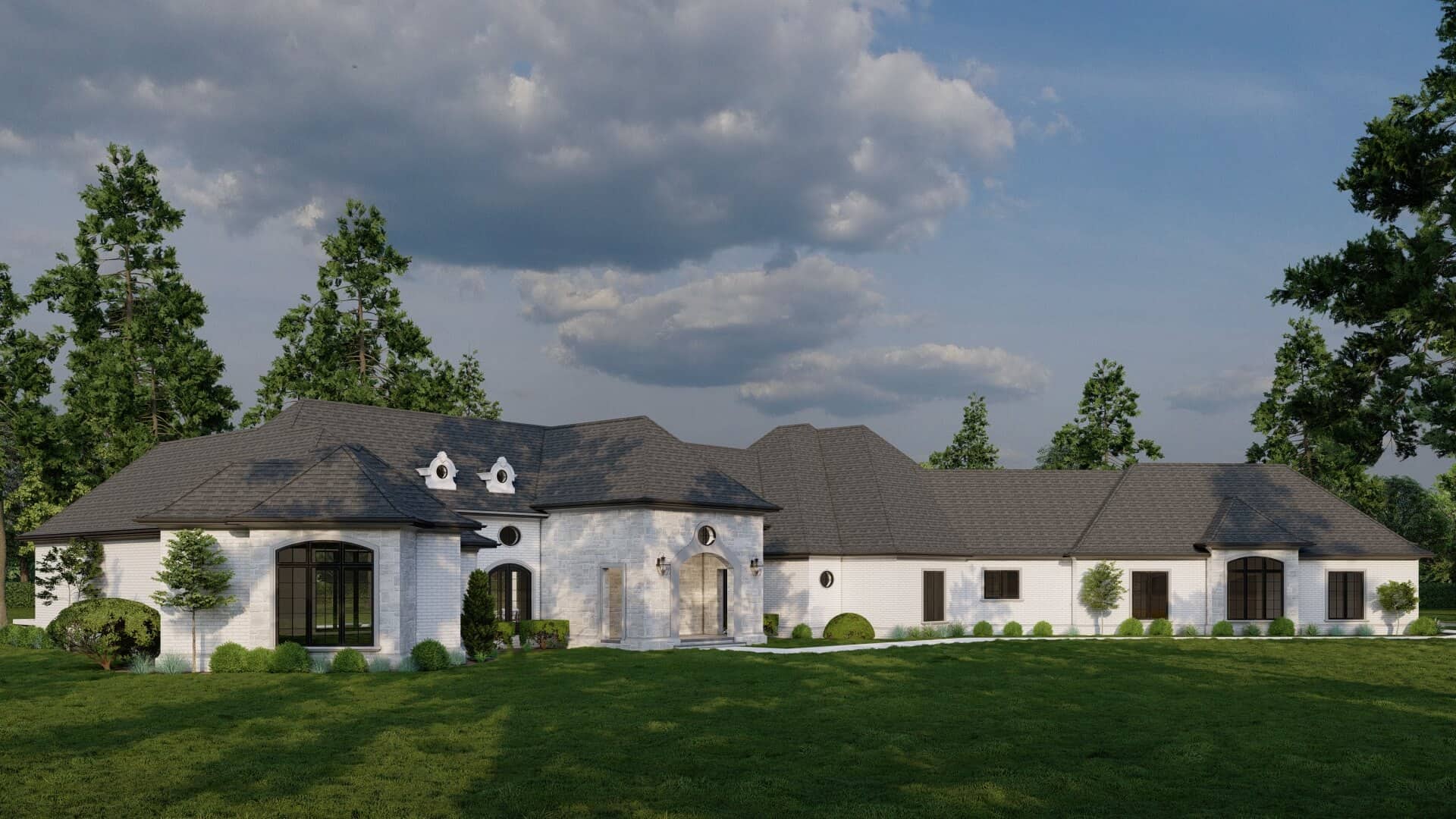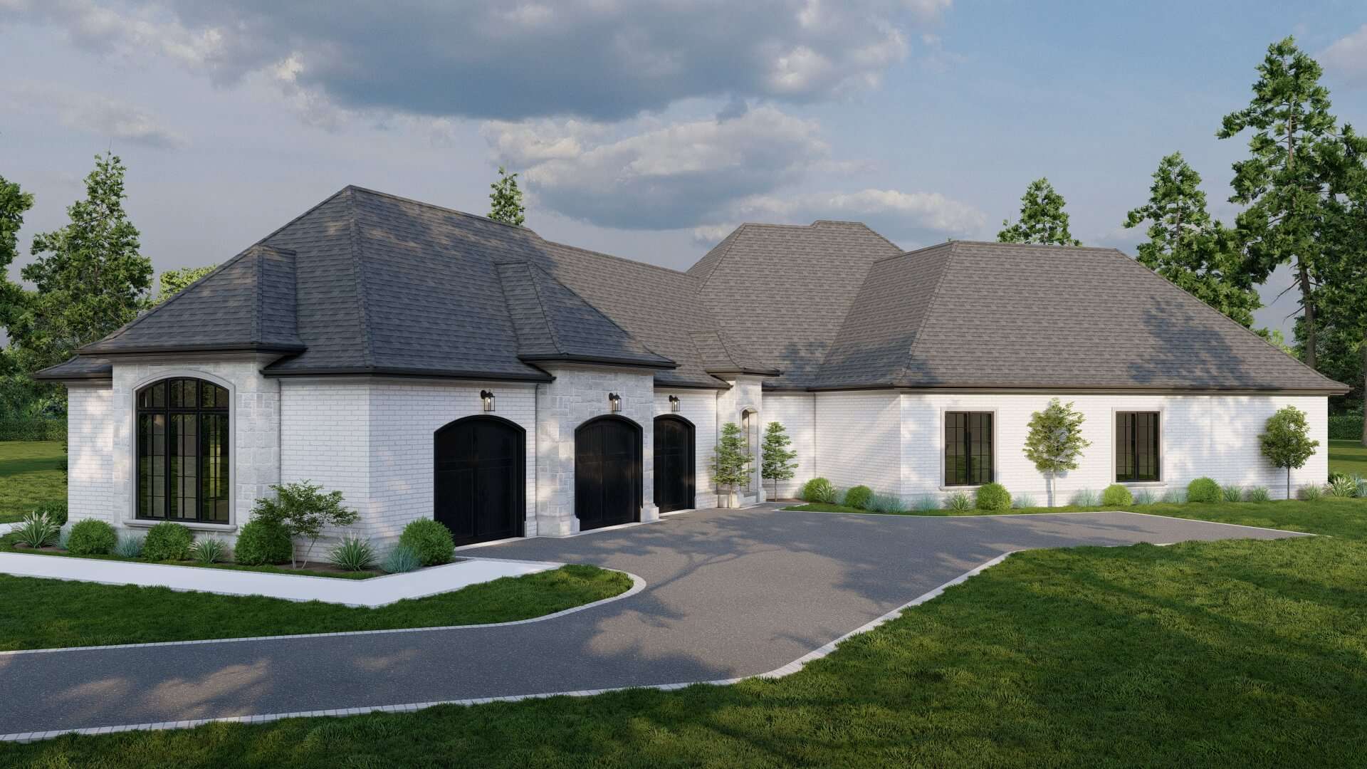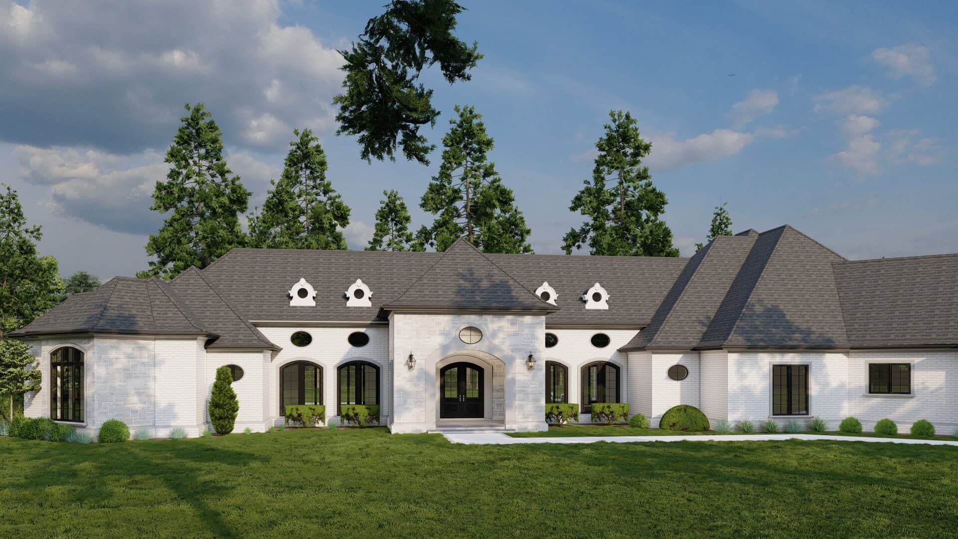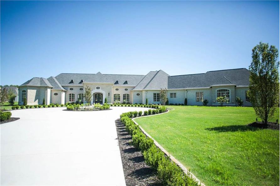 This lovely European style home plan with French influences (House Plan #193-1048) has 6554 square feet of living space. The 1 story floor plan includes 4 bedrooms, 4 full bathrooms,a nd 2 half baths.