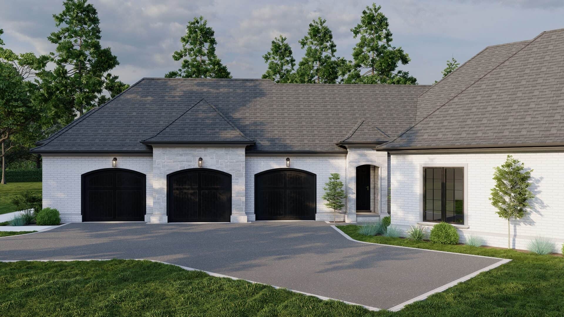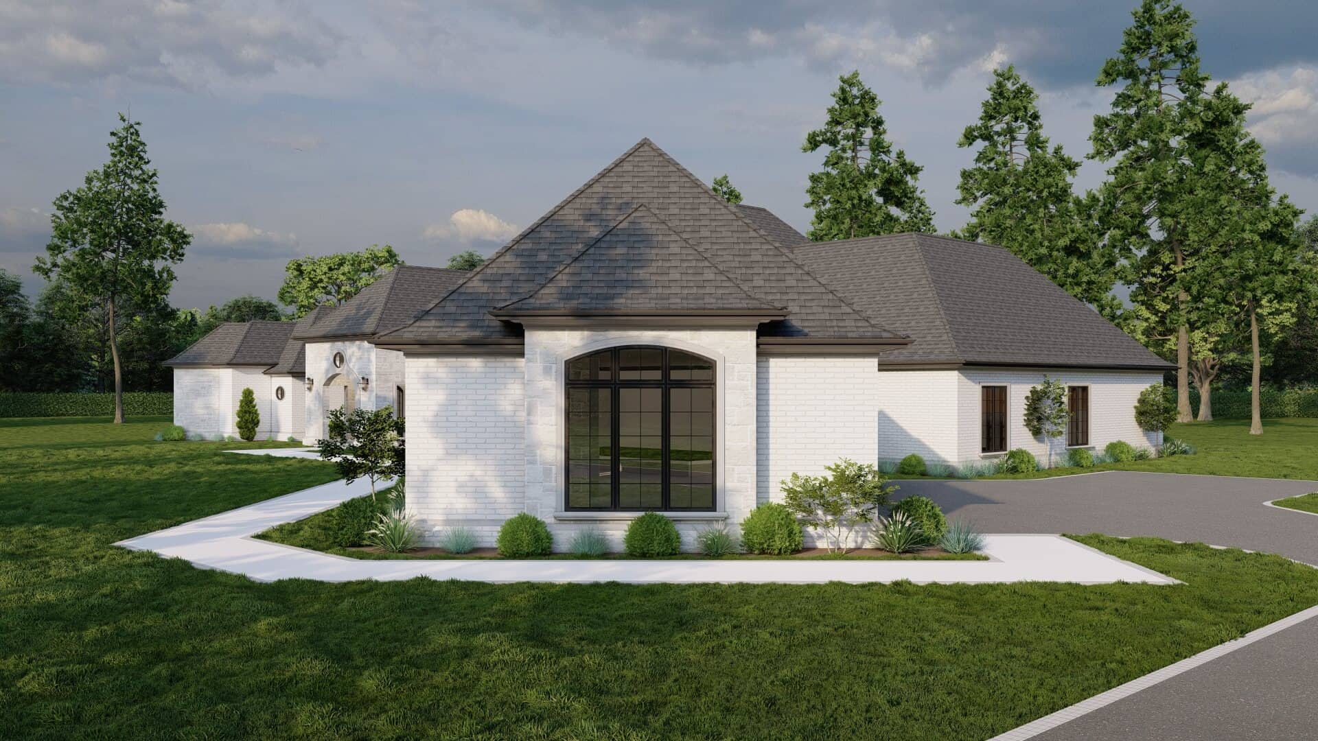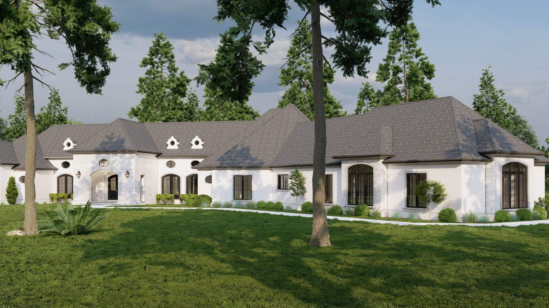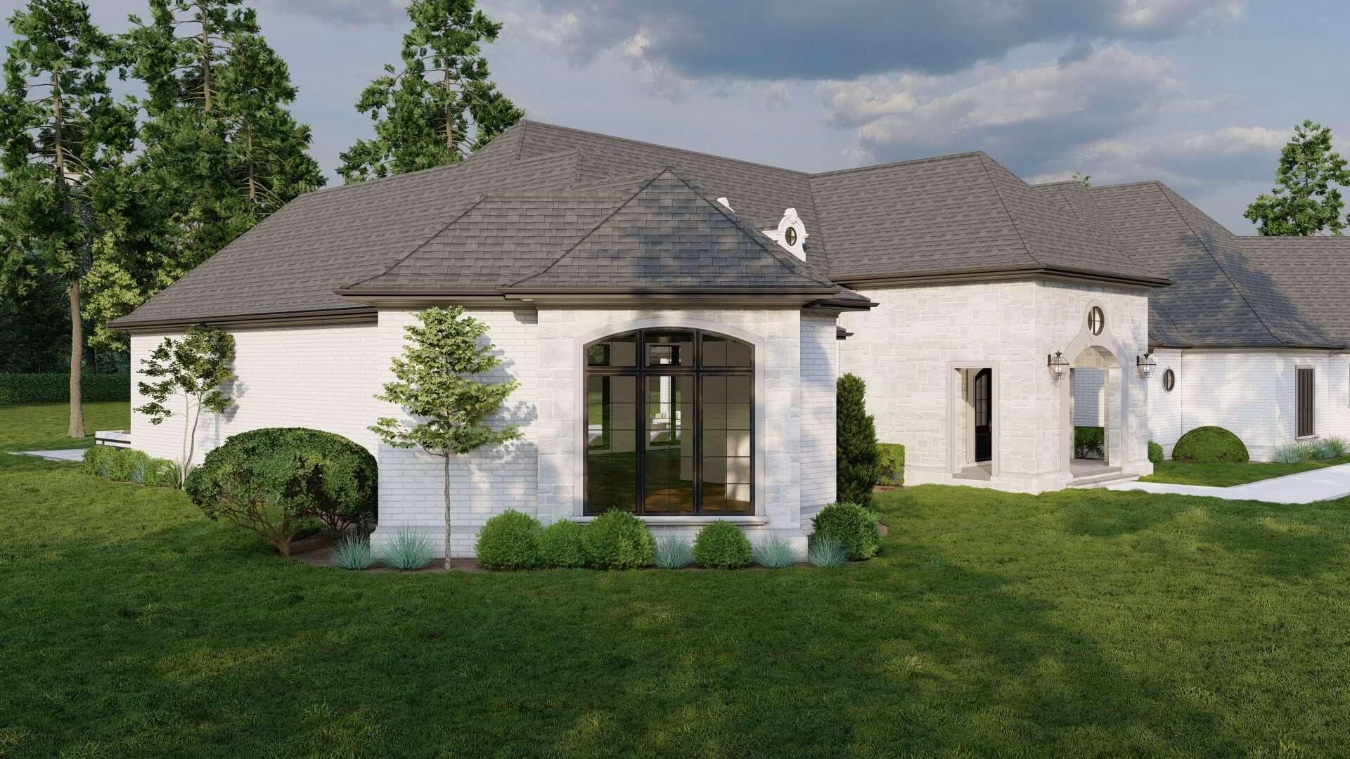 This lovely European style home plan with French influences (House Plan #193-1048) has 6554 square feet of living space. The 1 story floor plan includes 4 bedrooms, 4 full bathrooms,a nd 2 half baths.