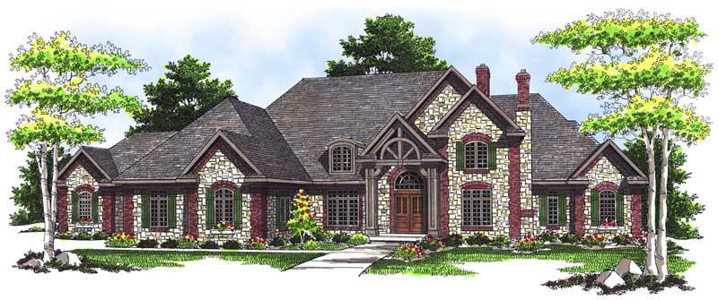Stately elegance and affluent taste create a rich stone-and-brick facade, met by a floor plan that that has it all! The design begins with a grand foyer with a gracefully arched stairway. From the entry, you can go through French doors to the study, or under arches to the formal dining room and gracious living room. The kitchen is created with conversation in mind as it flows into the cheerful nook and family room making the perfect area for casual gatherings. The main-level master suite is highlighted by a romantic fireplace, private porch, his and hers walk-in closets and an opulent...