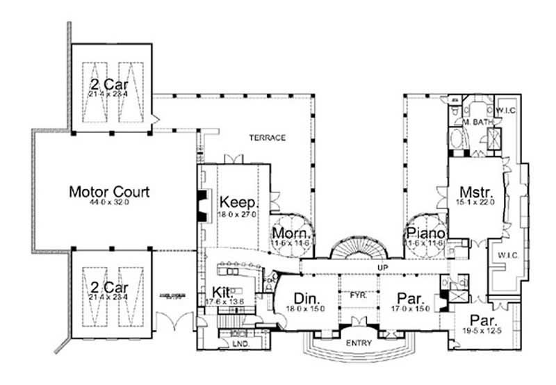 This beautiful and amazing houseplan has its own space for a grand piano. The keeping room has a pleasant fireplace and a door leading out to a nice terrace. You can enjoy your luxurious master bedroom with a huge walk-in closet, a master bathroom, and a hallway joining to the parlor.