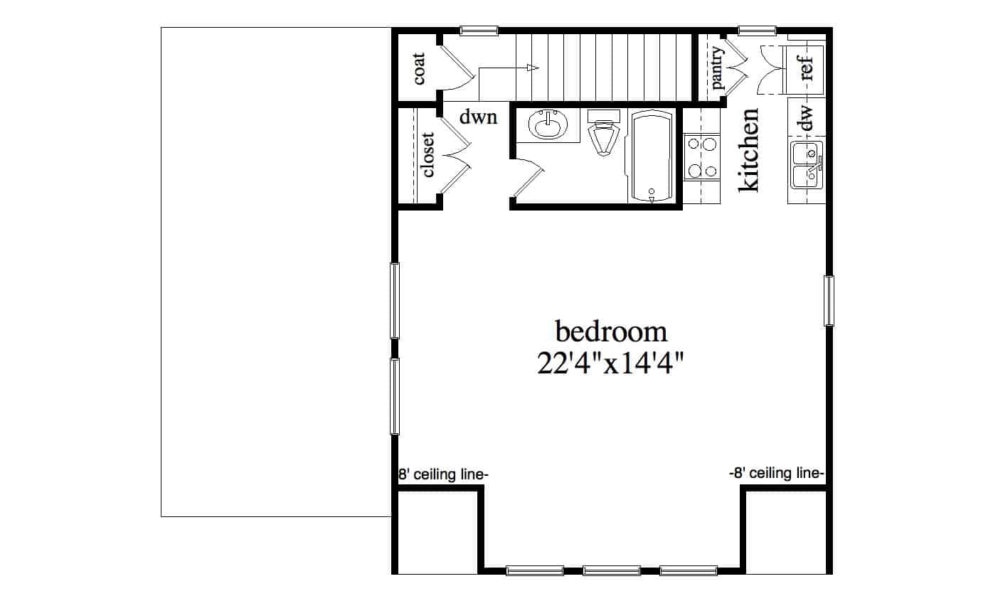 An impressive Garage with lovely large windows that exude lots of natural light. This 878-square-foot 2-car garage accommodates your needs with enough space to walk around and store a few additional things. The garage has 699 square feet of fully conditioned living space on the second level – a bedroom, a full bathroom, and, a kitchen.