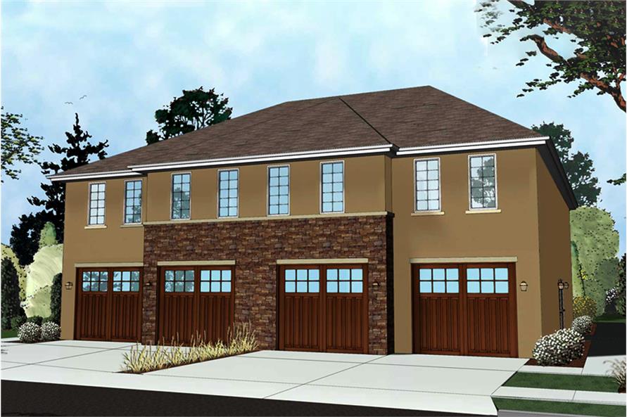 This pleasing Contemporary 4-unit building (Multi-Family House Plan #100-1279) has 708 living sq ft and 1 bedroom per unit.