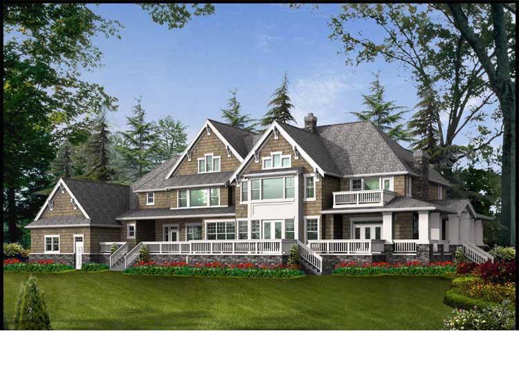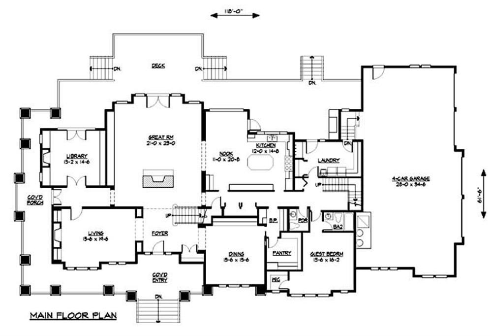 This is a luxurious Craftsman style Country house plan with big rooms and plenty of amenities. The wrap around porch provides outdoor living space and expands the interior square footage. The foyer is flanked by the living and dining rooms. The great room ahead is defined by the large center-piece fireplace. The kitchen is open and as big as they come. The house plans also call for a butler's pantry and a walk-in pantry, to extend the kitchen storage and preparation options. The oversized laundry room has plenty of counter space for crafts as well. A guest suite...