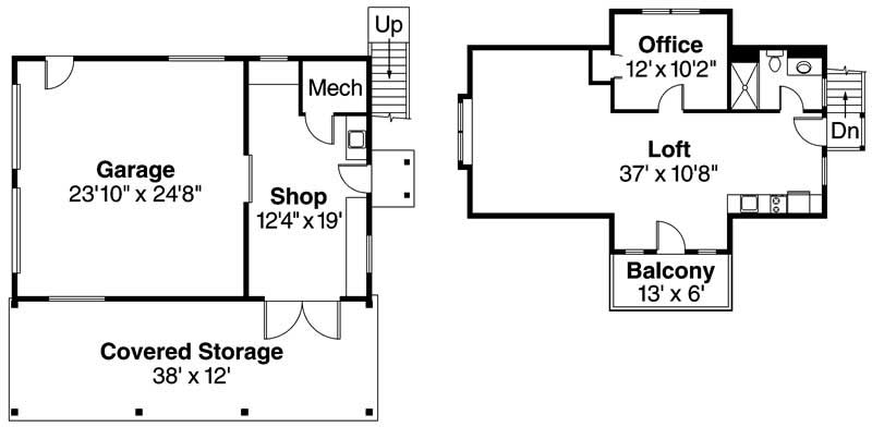 The #108-1075 home plan is a two story garage plan with 1792 total living square feet. This set of house plans has a shop, loft, office, balcony, and covered storage. This plan has 988 total area in the garage and there is a 9 ft. ceiling height. This garage house plan also has a slab foundation.