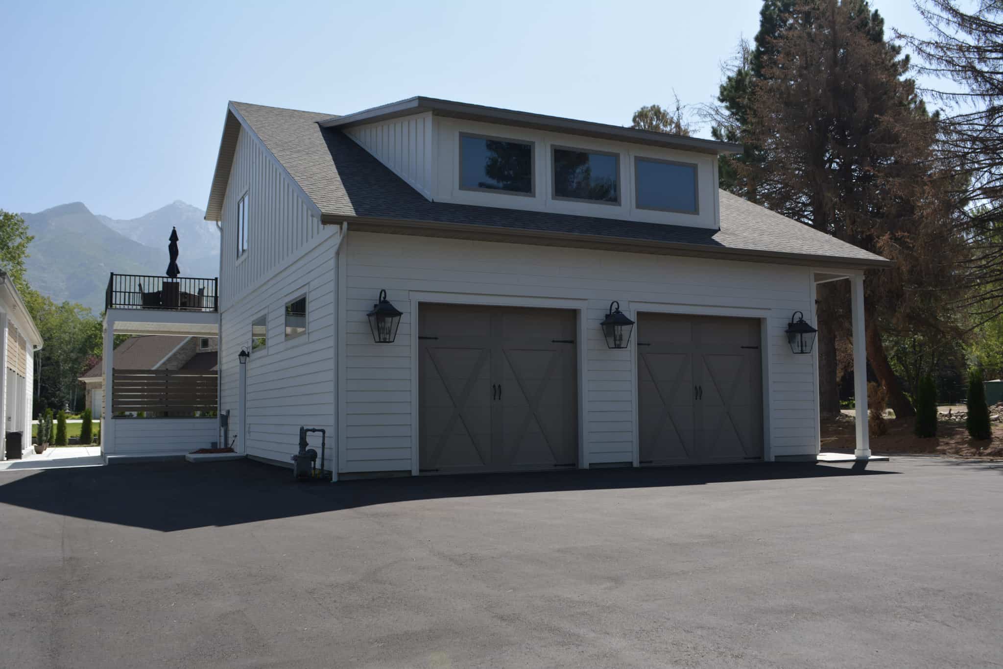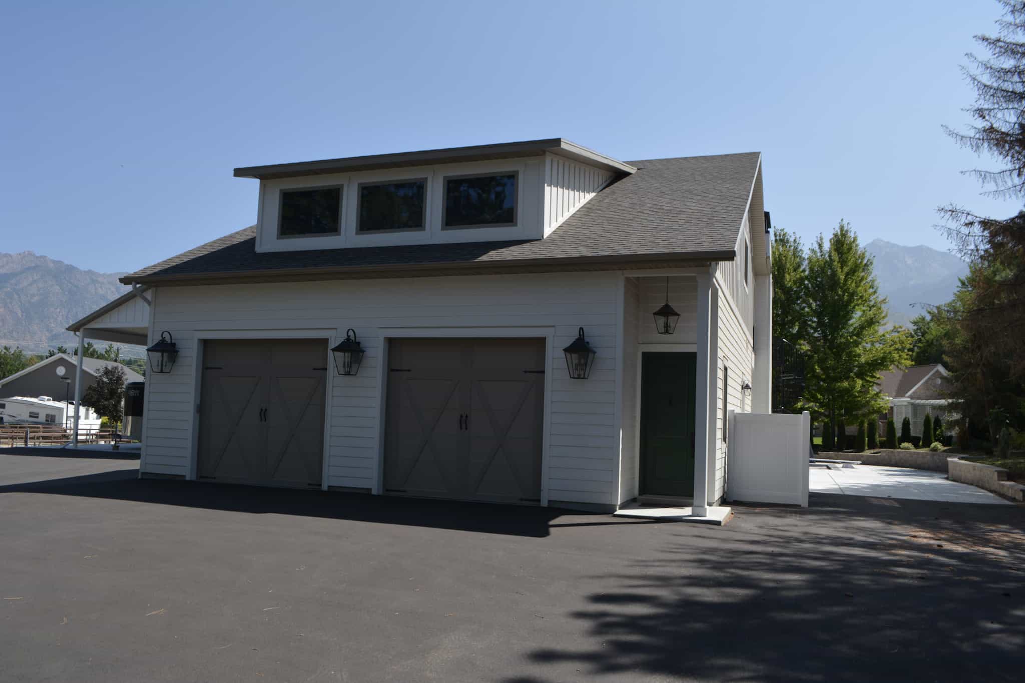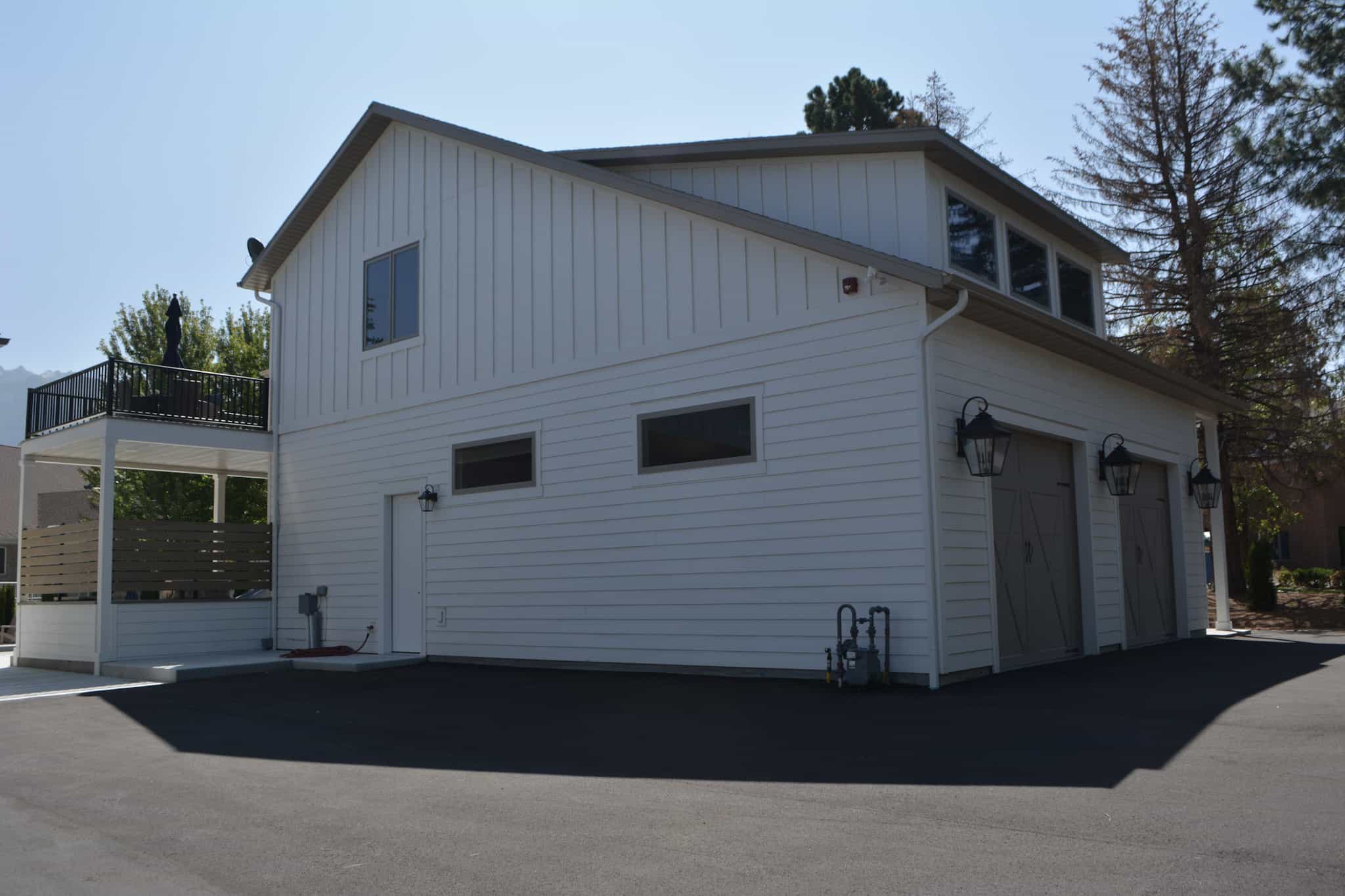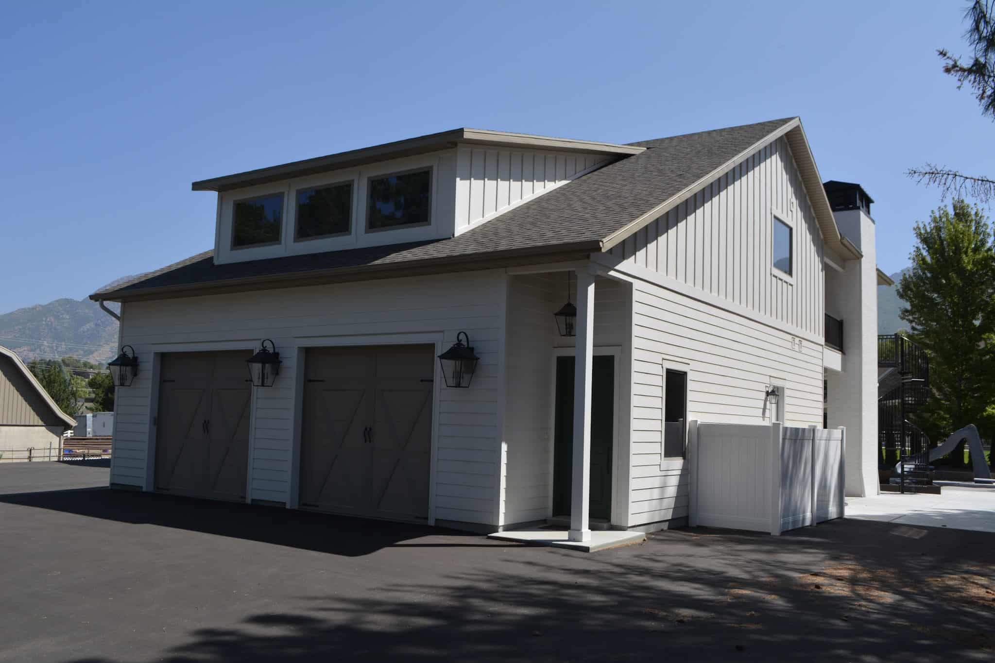 This attractive barn with Craftsman elements has 2,297 finished and unfinished above-grade square feet. The garage can easily accommodate two vehicles. Above the garage is an 805-square-foot living space that includes one bedroom, 2.5 baths, and a kitchenette.