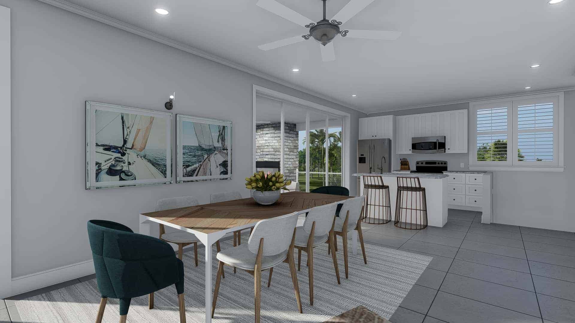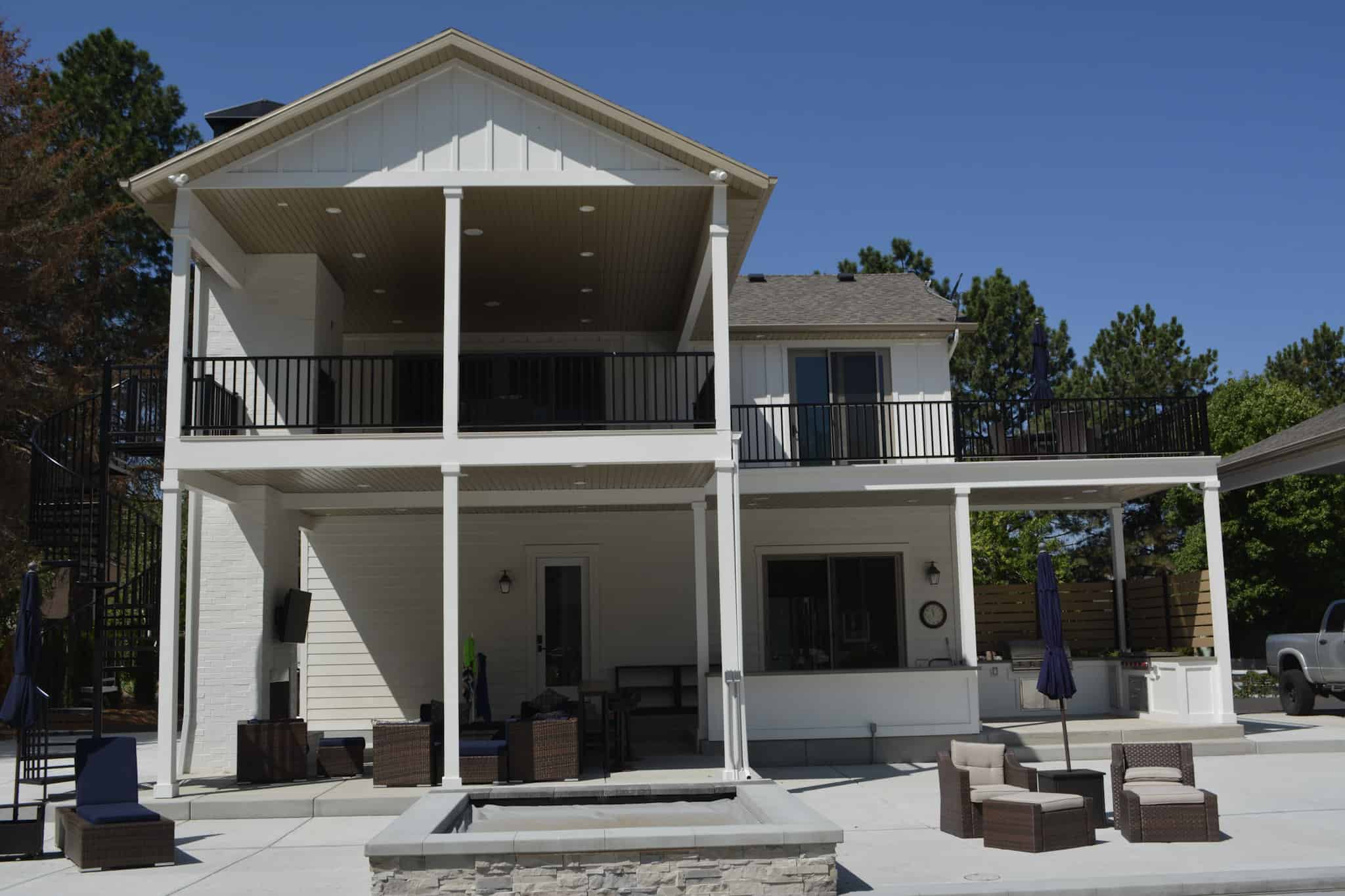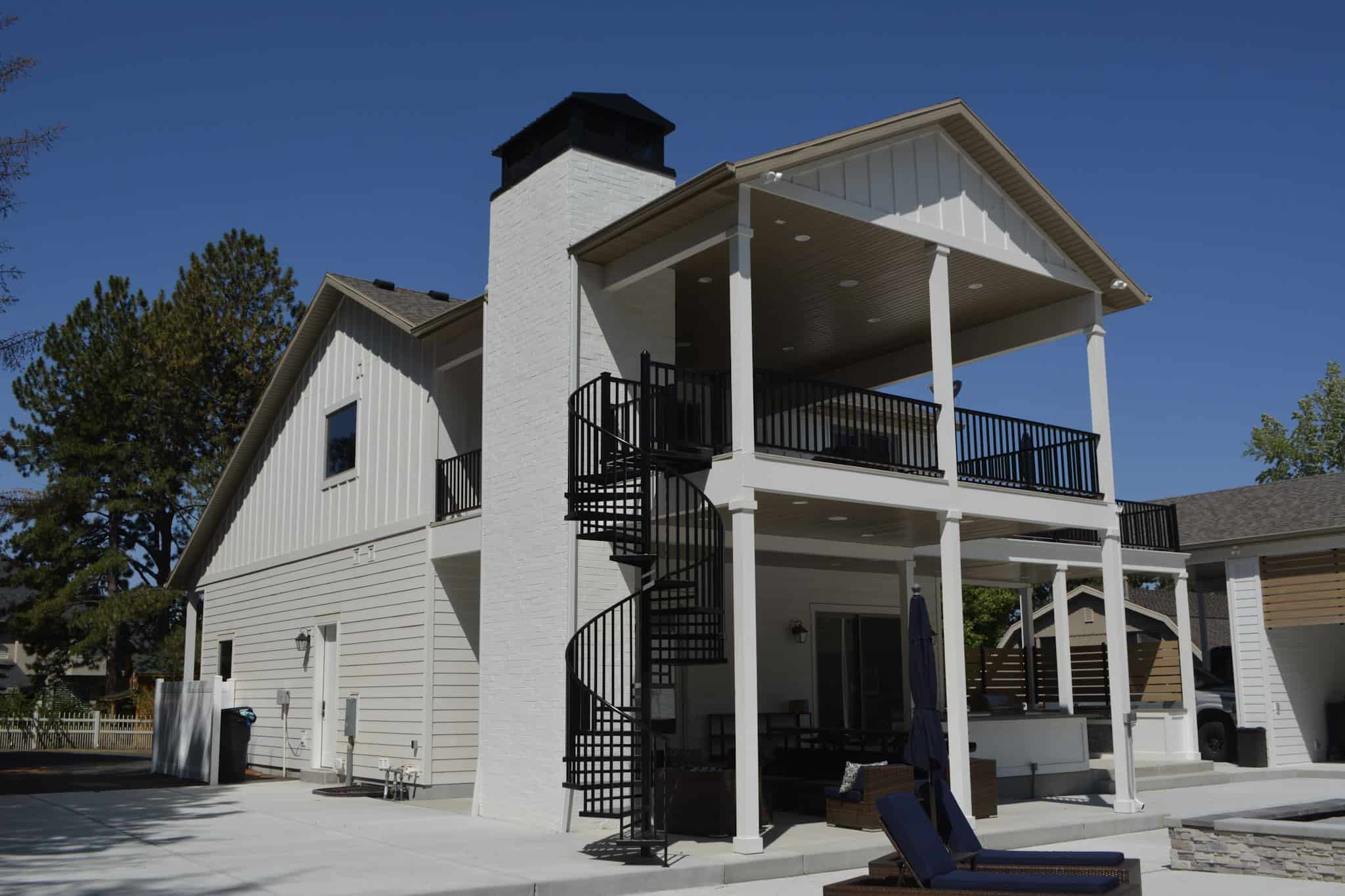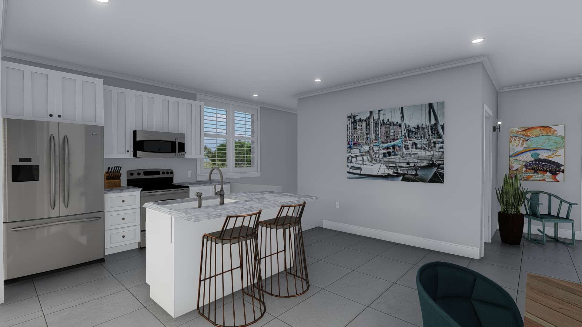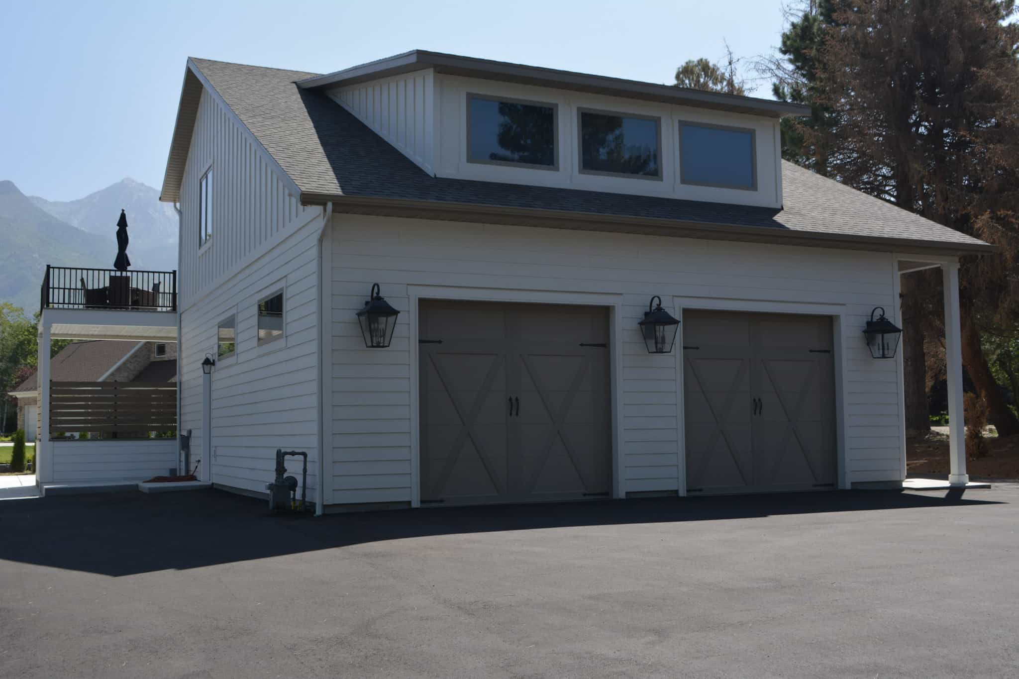This attractive barn with Craftsman elements has 2,297 finished and unfinished above-grade square feet. The garage can easily accommodate two vehicles. Above the garage is an 805-square-foot living space that includes one bedroom, 2.5 baths, and a kitchenette.
