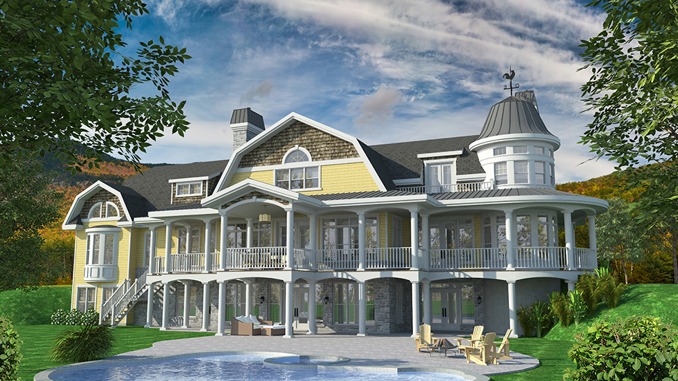 This lovely Cottage style home with Craftsman influences (House Plan #158-1296) has 8277 square feet of living space. The 2 story floor plan includes 6 bedrooms.