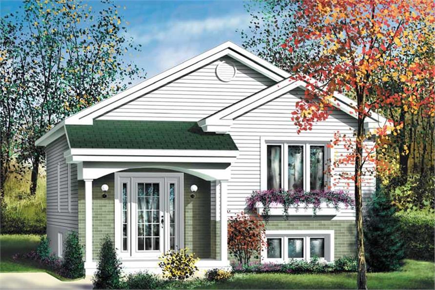 This house plan features a split-entry. On the upper level, there is a long strip dedicated to the living and dining rooms. The kitchen is behind these two rooms. On the side, there are two bedrooms and a good sized bathroom.