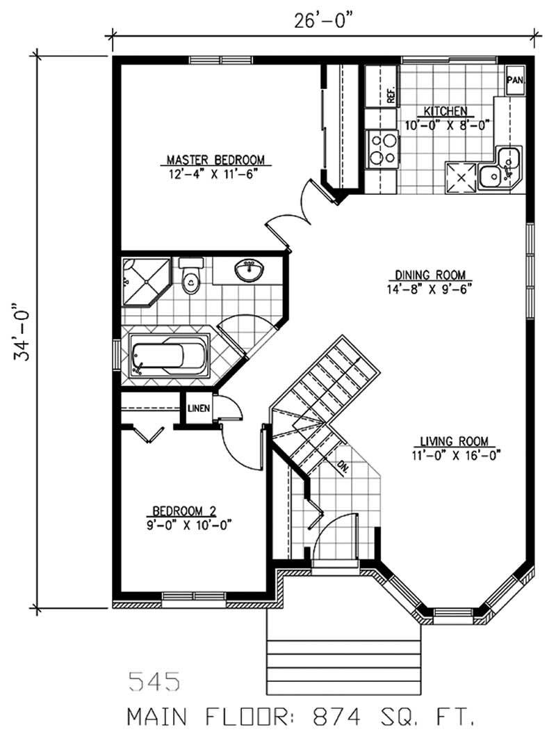This is a usual Bungalow with two bedrooms and a single bathroom. The size allows this plan to go in a narrow lot. This is an economical home for first time buyers.