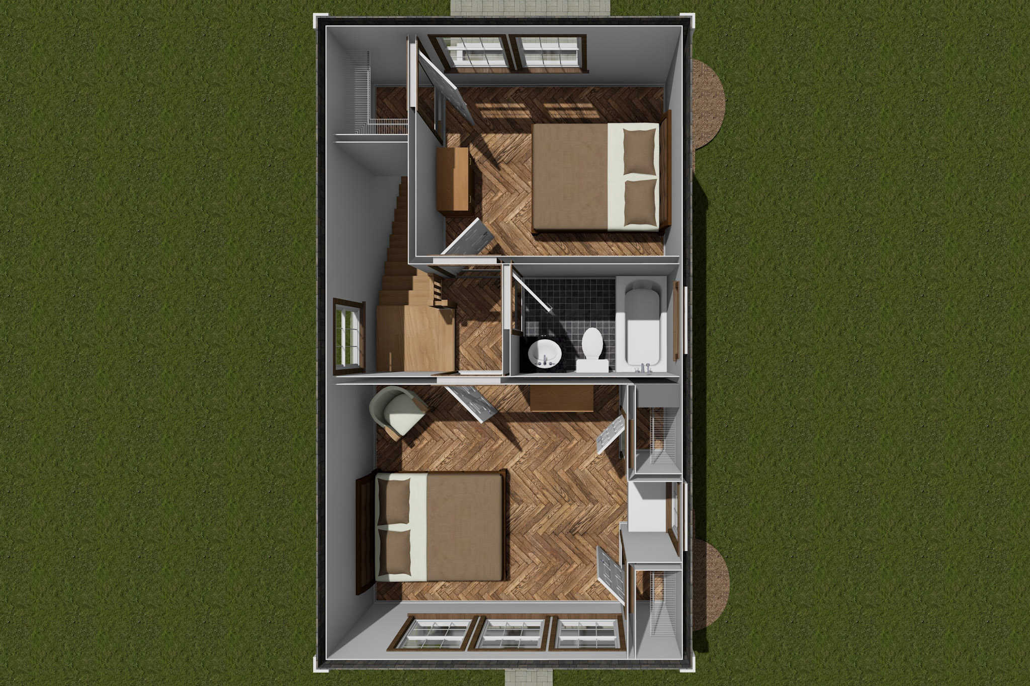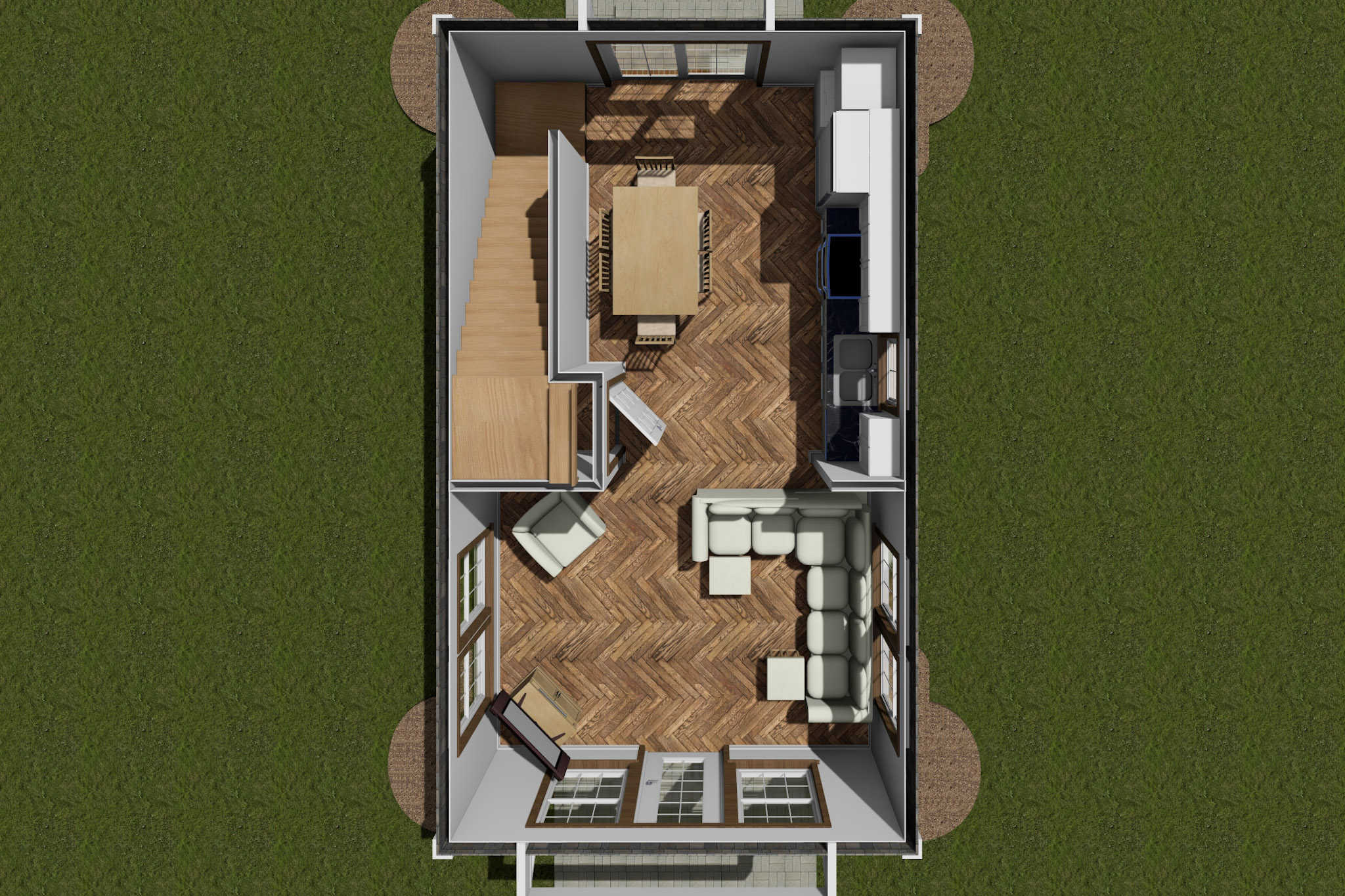 Charming and efficient, this 896 sq ft shingle-style cottage offers timeless curb appeal and a smart layout that makes the most of every inch. With 2 bedrooms and 1 full bath, it’s a perfect fit for a vacation retreat, guest house, or compact primary residence. The exterior features classic cedar-style shingles and symmetrical windows that create a warm, welcoming look. Inside, the main floor offers an open-concept layout with a combined Living Room, Dining Area, and Kitchen—anchored by a sliding glass door that brings in natural light and extends the living space outdoors....