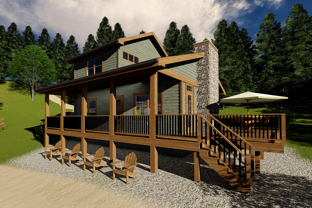This lovely Cottage style home with Vacation Homes influences (House Plan #100-1341) has 968 square feet of living space. The 2 story floor plan includes 2 bedrooms.
