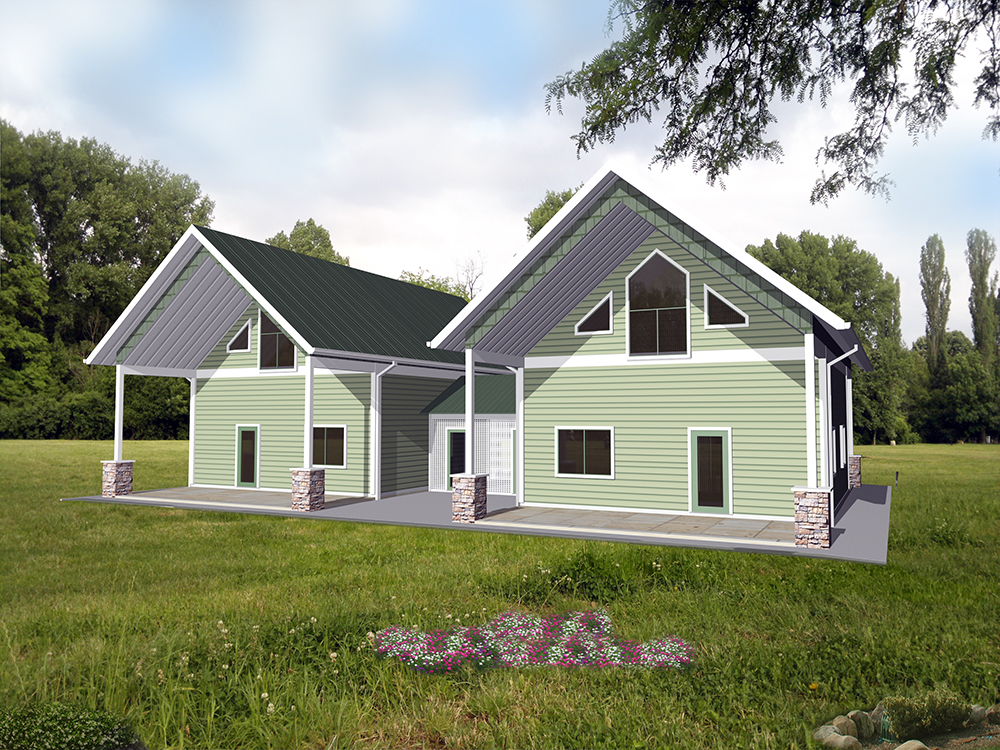 This charming cottage style home has 998 square feet of living space. The two-story floor plan includes 2 bedrooms and 2 bathrooms. The exterior of this home has a welcoming breezeway. Inside, this house design's floor plan includes a well-designed master bathroom.